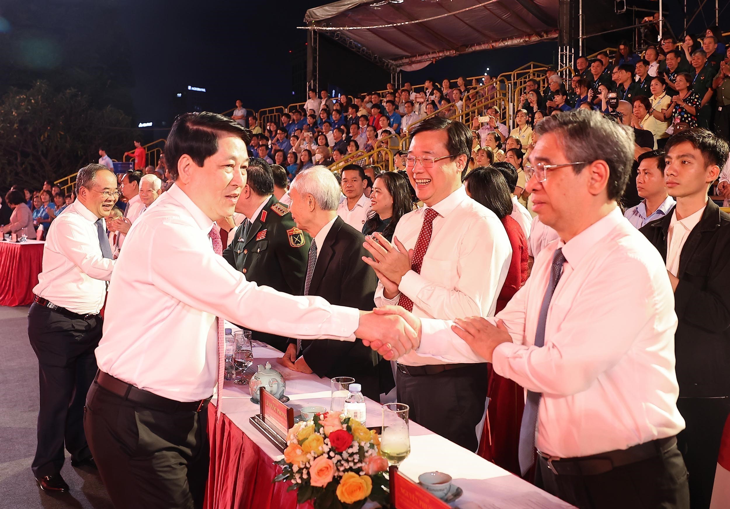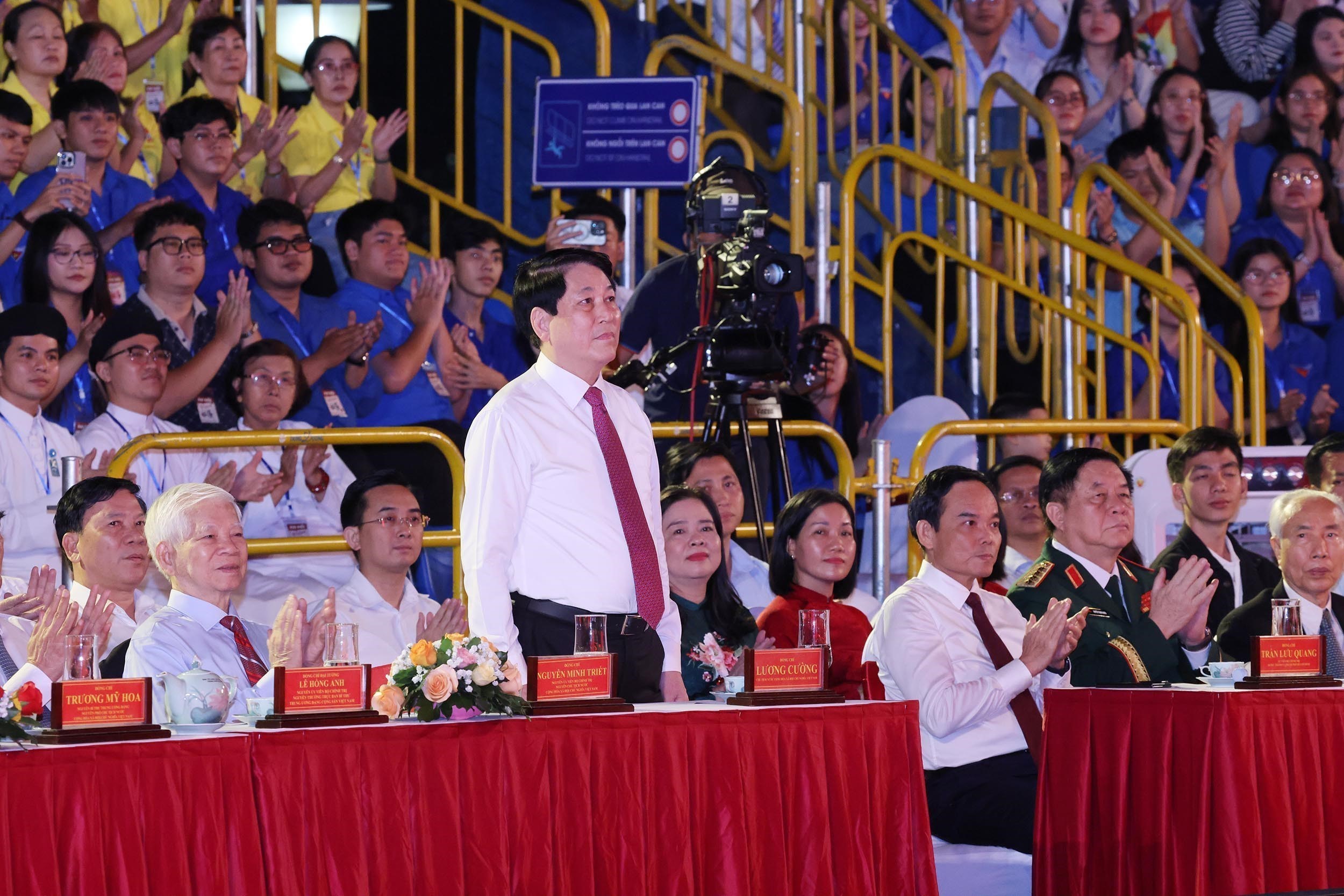 Chủ tịch nước Lương Cường dự cầu truyền hình “Hai tay xây dựng một sơn hà” tại điểm cầu Bến Nhà Rồng, Thành phố Hồ Chí Minh. Ảnh: Lâm Khánh - TTXVN