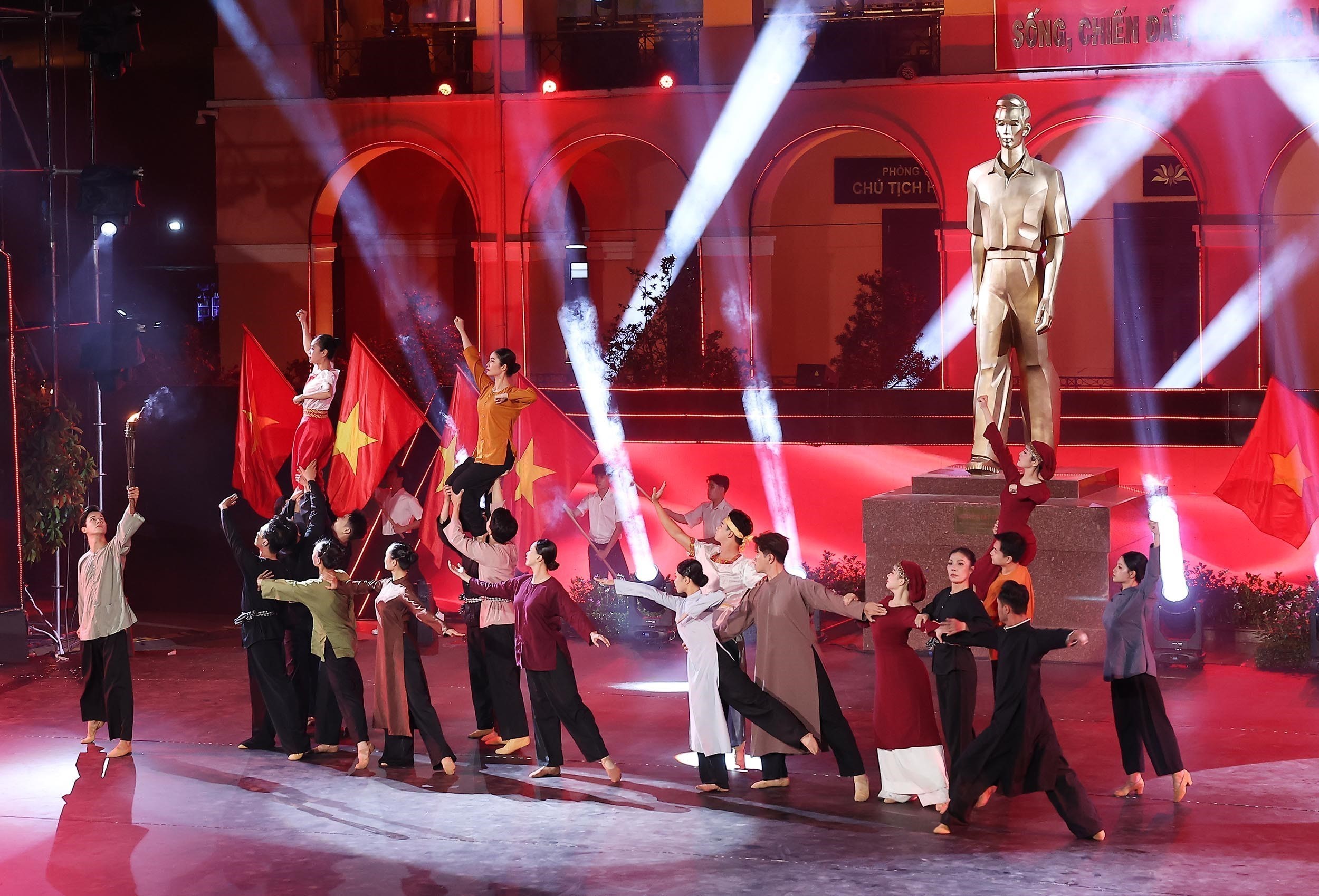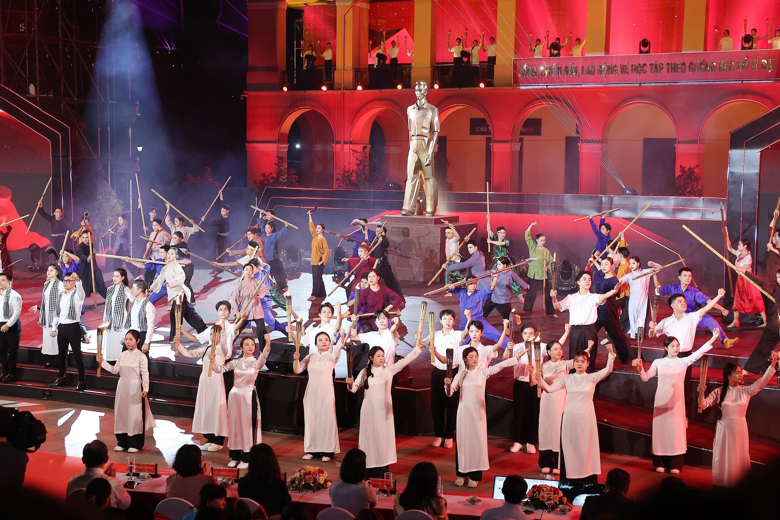 Chương trình văn nghệ tại điểm cầu Bến Nhà Rồng, Thành phố Hồ Chí Minh. Ảnh: Lâm Khánh - TTXVN