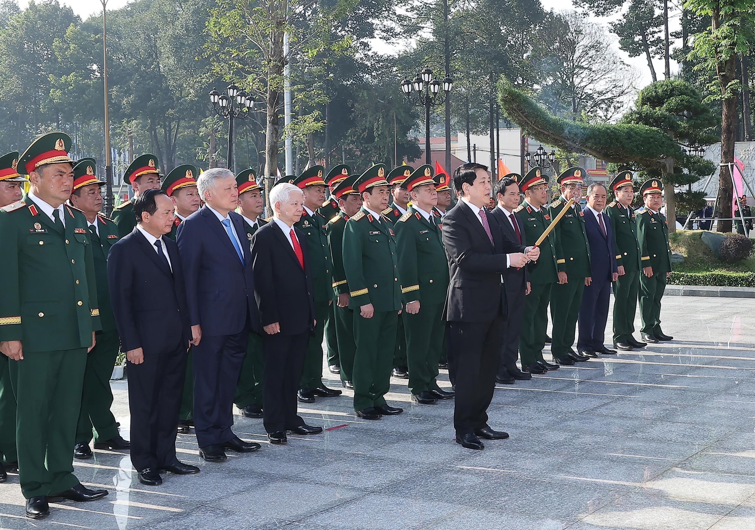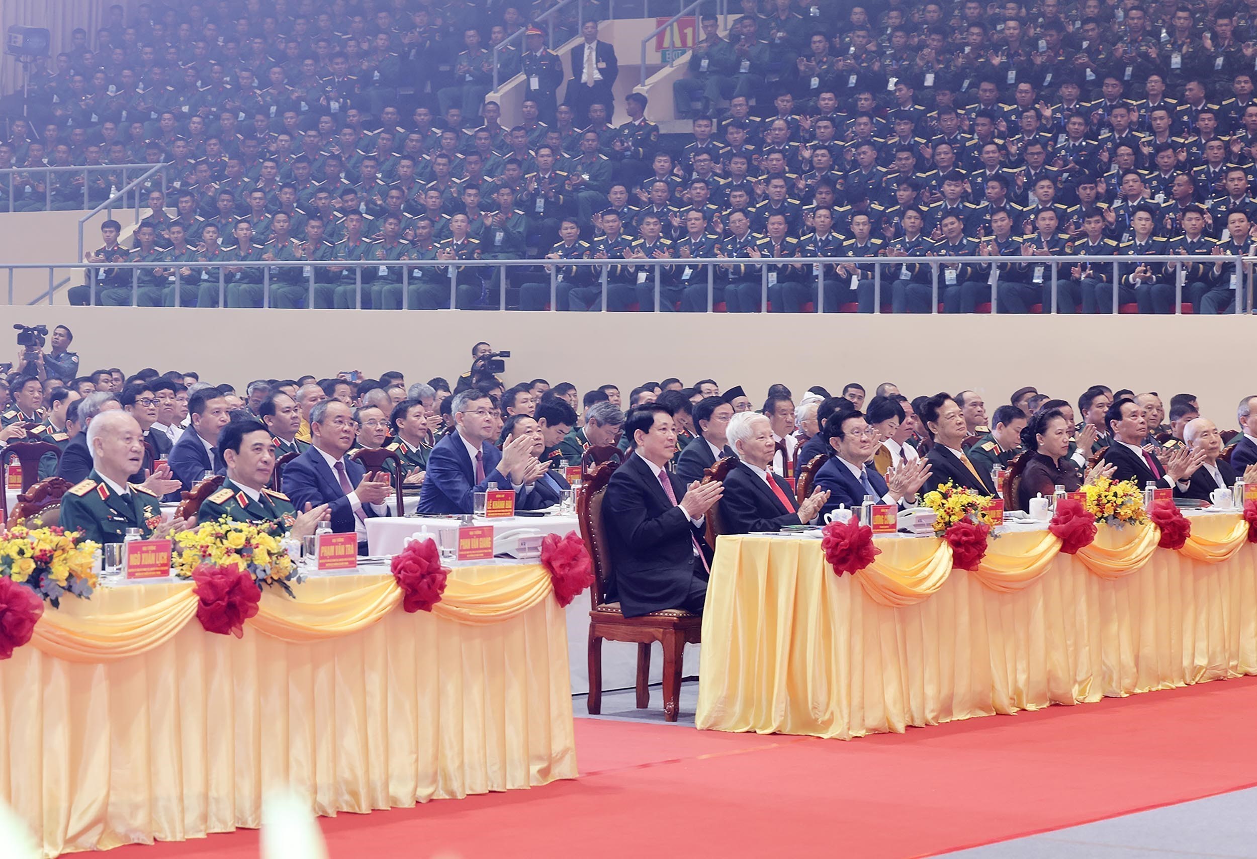 Chủ tịch nước Lương Cường, Chủ tịch Hội đồng Quốc phòng và An ninh, Thống lĩnh các lực lượng vũ trang, dự và phát biểu chỉ đạo tại Lễ kỷ niệm.