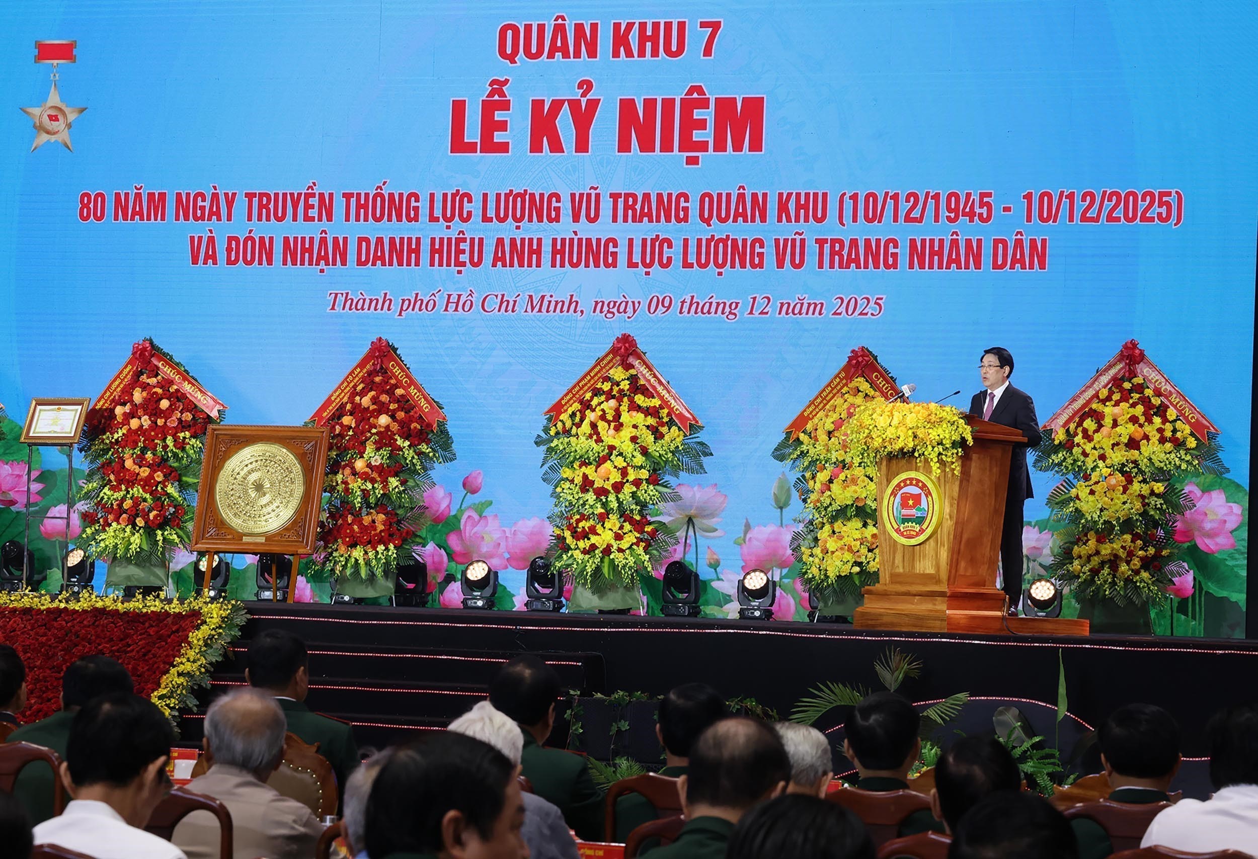 Sáng 9/12, tại Thành phố Hồ Chí Minh, Đảng ủy - Bộ Tư lệnh Quân khu 7 long trọng tổ chức Lễ kỷ niệm 80 năm Ngày truyền thống Lực lượng vũ trang Quân khu 7 (10/12/1945 - 10/12/2025) và đón nhận danh hiệu Anh hùng Lực lượng vũ trang nhân dân.