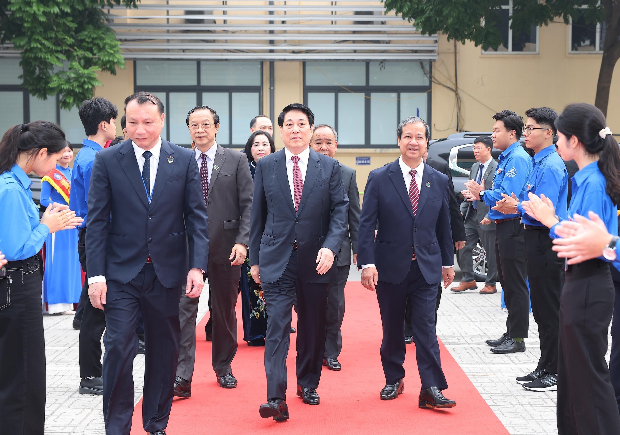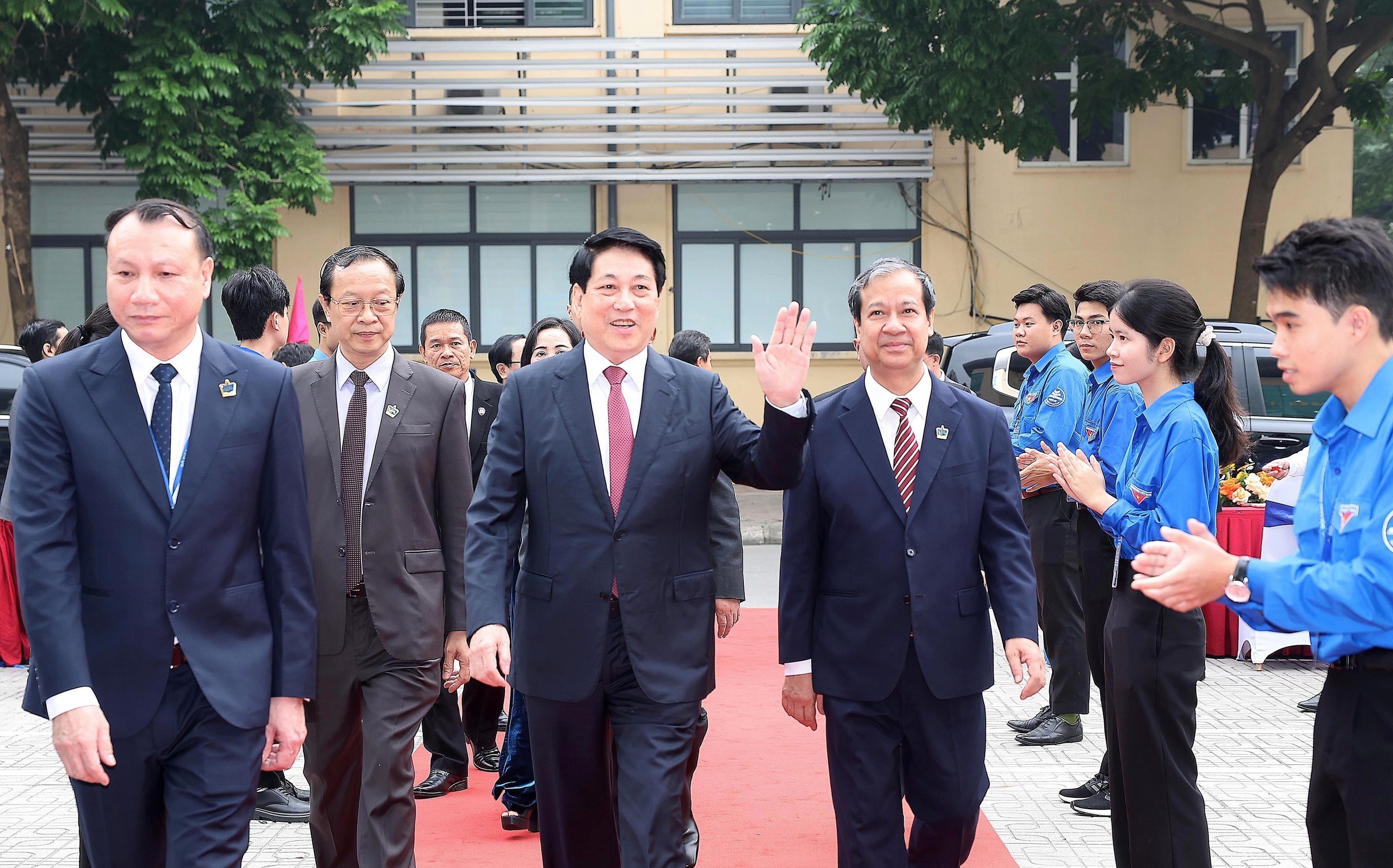 Chủ tịch nước Lương Cường với lãnh đạo, giáo viên Trường Đại học Sư phạm Hà Nội. Ảnh: Lâm Khánh – TTXVN