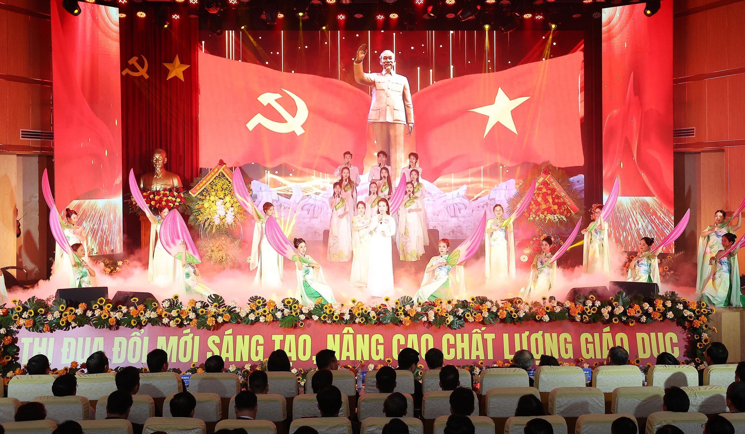 Chương trình văn nghệ chào mừng Lễ kỷ niệm Ngày Nhà giáo Việt Nam (20/11) và Đại hội Thi đua yêu nước ngành Giáo dục lần thứ VIII. Ảnh: Lâm Khánh – TTXVN
