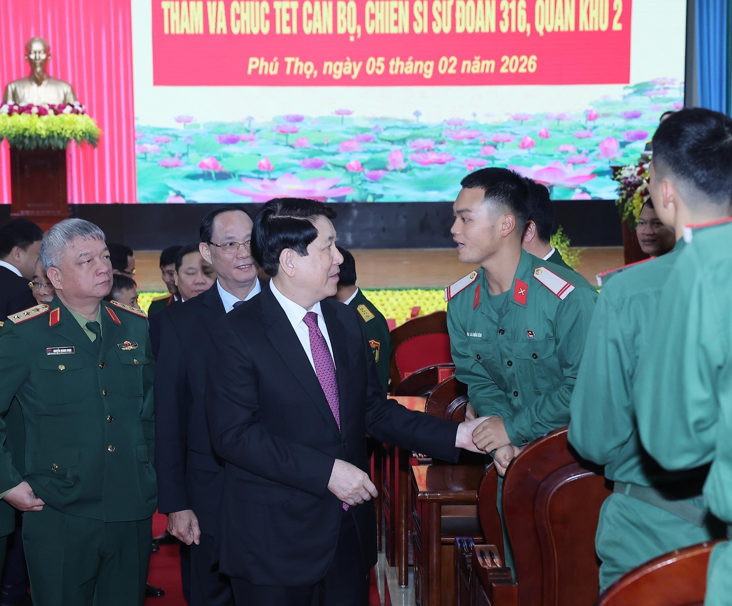 Nhân dịp đầu năm mới 2026 và trước thềm Tết Nguyên đán Bính Ngọ, sáng 5/2, Chủ tịch nước Lương Cường và đoàn công tác Trung ương đã tới thăm, động viên và chúc Tết Đảng bộ, chính quyền, các hộ nghèo, gia đình chính sách, công nhân lao động có hoàn cảnh khó khăn và cán bộ, chiến sĩ lực lượng vũ trang tỉnh Phú Thọ.