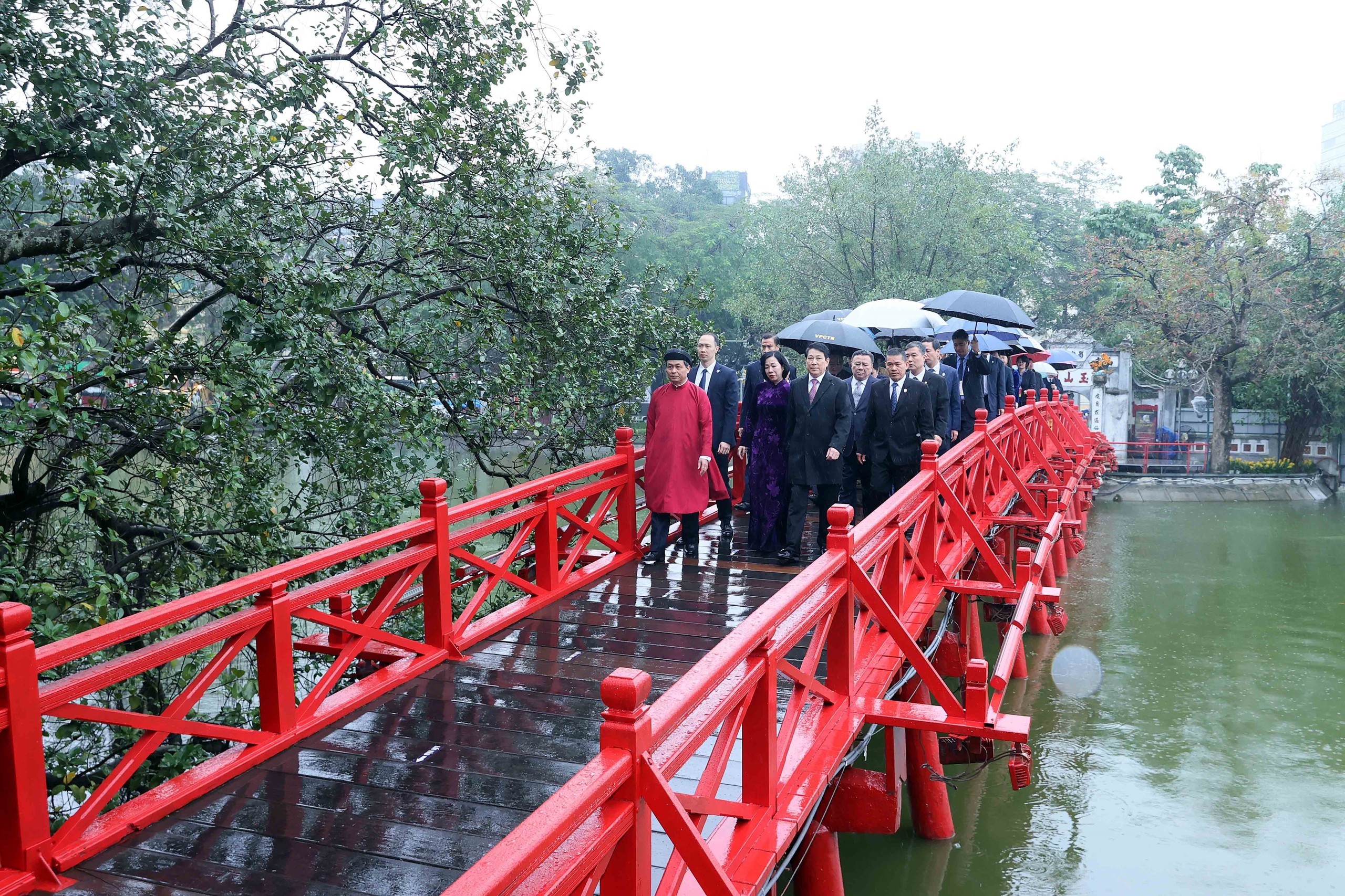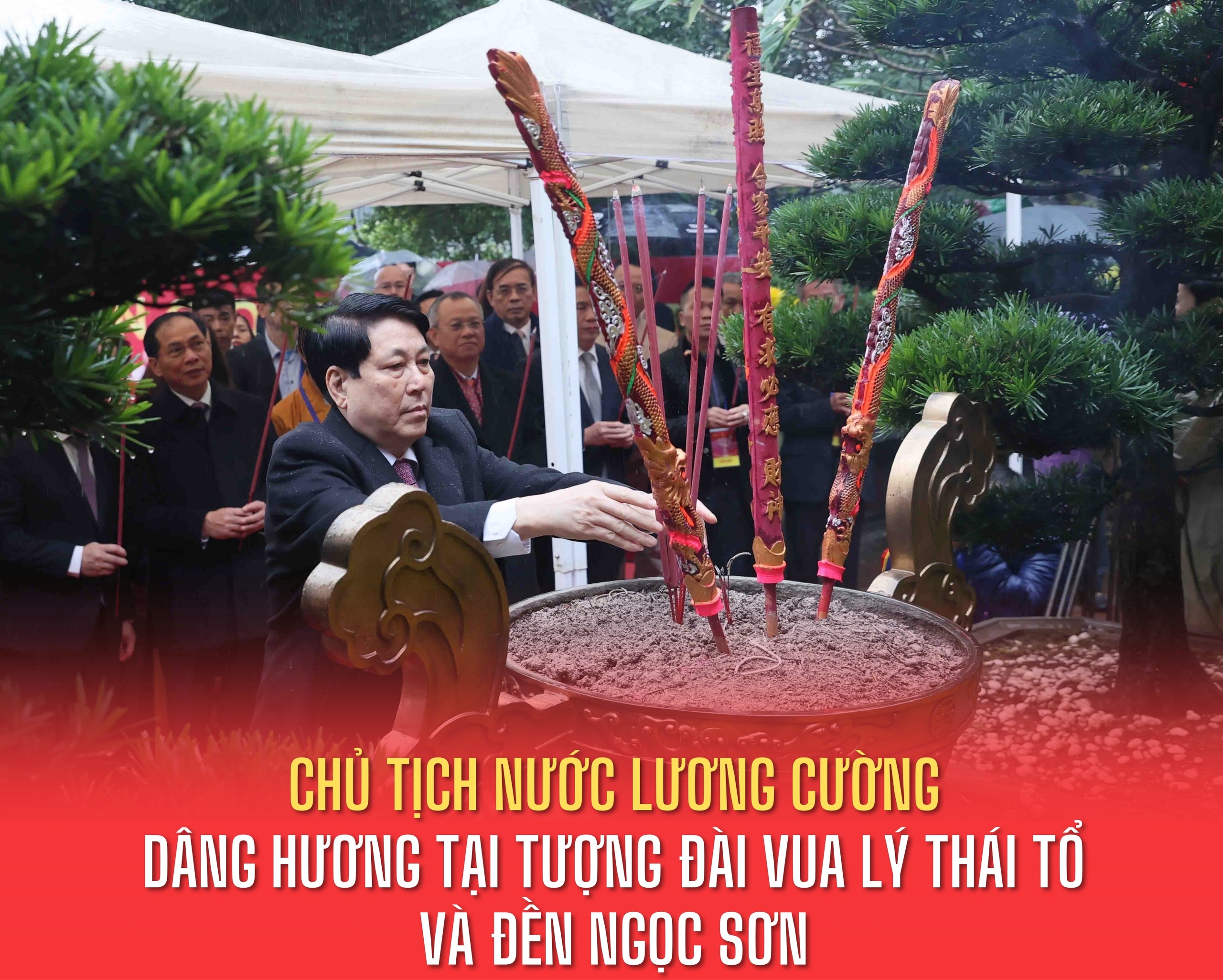 Sáng 8/2 (tức ngày 20 tháng chạp), Chủ tịch nước Lương Cường và Phu nhân cùng đại diện lãnh đạo bộ, ban, ngành Trung ương, thành phố Hà Nội và 100 đại biểu kiều bào tiêu biểu thực hiện nghi lễ dâng hương tại Tượng đài vua Lý Thái Tổ và đền Ngọc Sơn.