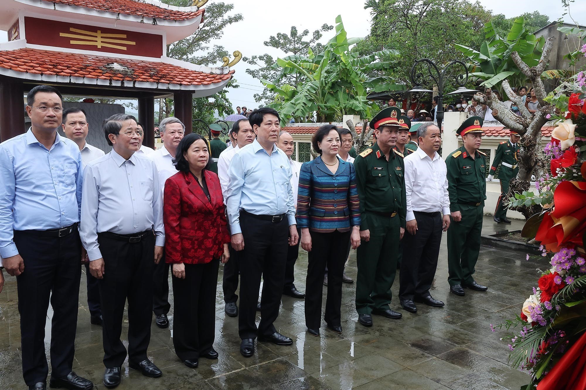 Chủ tịch nước Lương Cường dâng hoa, dâng hương tại Nhà tưởng niệm Tổng đốc Hoàng Diệu, thôn Xuân Kỳ, xã Gò Nổi. Ảnh: Lâm Khánh – TTXVN