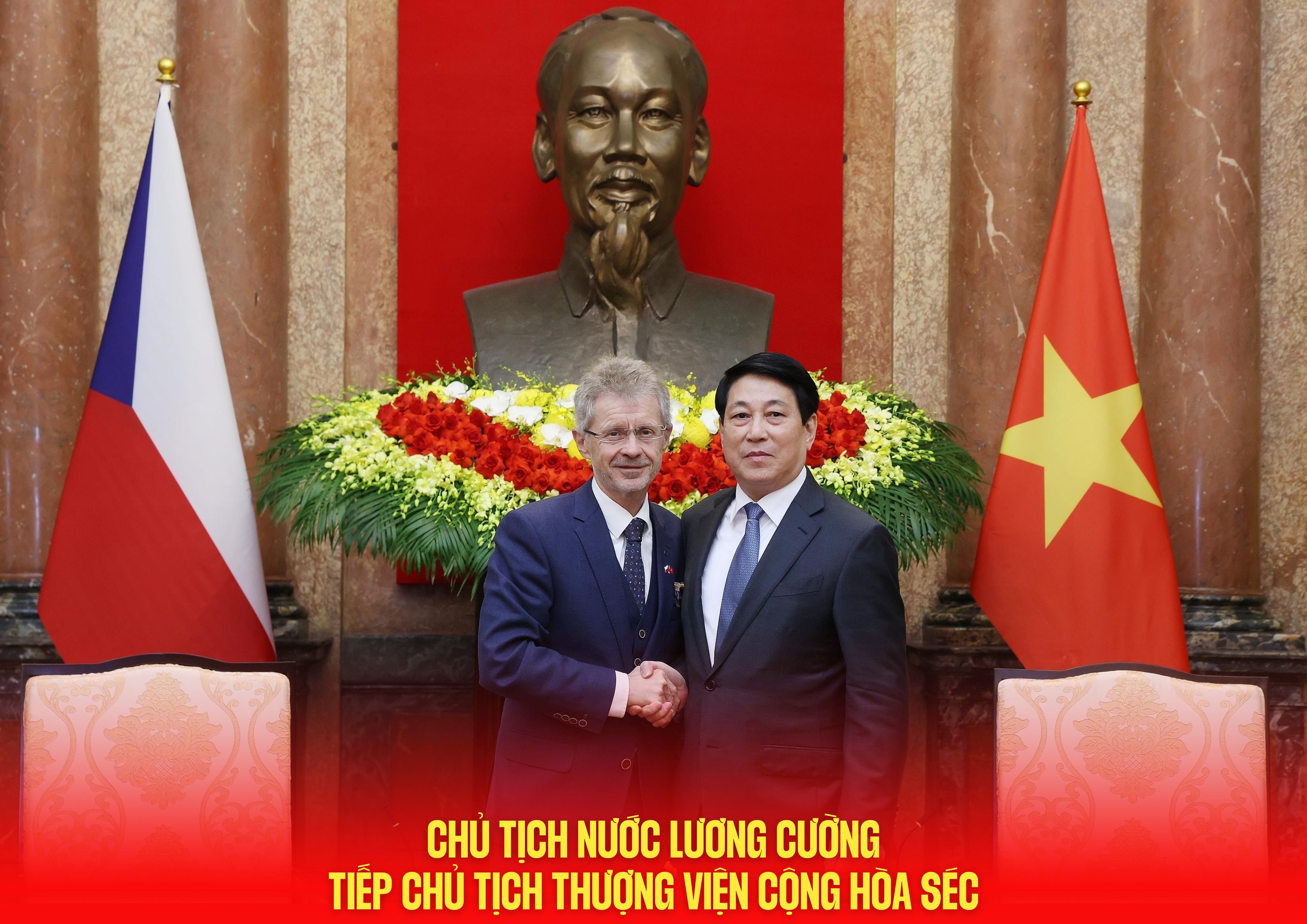 Chủ tịch nước Lương Cường tiếp Chủ tịch Thượng viện Quốc hội Cộng hòa Séc Milos Vystrcil. Ảnh: Lâm Khánh – TTXVN