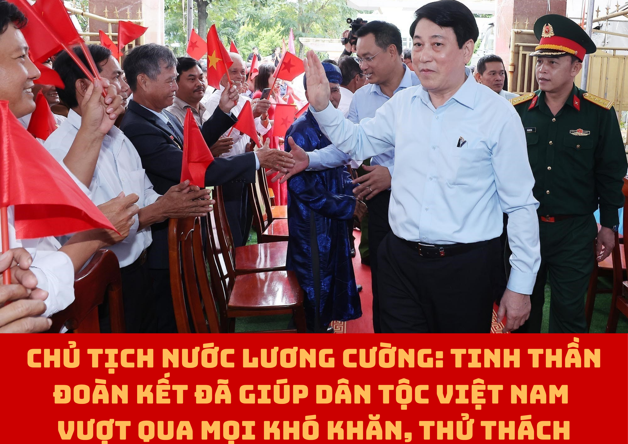 Chủ tịch nước khẳng định, đoàn kết là truyền thống văn hóa, lịch sử, được hun đúc qua hàng ngàn năm, luôn là cội nguồn sức mạnh trong lịch sử dựng nước và giữ nước của dân tộc ta, đặc biệt trong thời đại Hồ Chí Minh. Giá trị thiêng liêng, truyền thống quý báu đó đã tạo nên nét đẹp văn hóa rất đặc trưng của con người Việt Nam. Phát huy truyền thống đoàn kết của ông cha ta "Một cây làm chẳng nên non, ba cây chụm lại nên hòn núi cao", Bác Hồ kính yêu đã khẳng định và căn dặn: "Đoàn kết, đoàn kết, đại đoàn kết. Thành công, thành công, đại thành công".