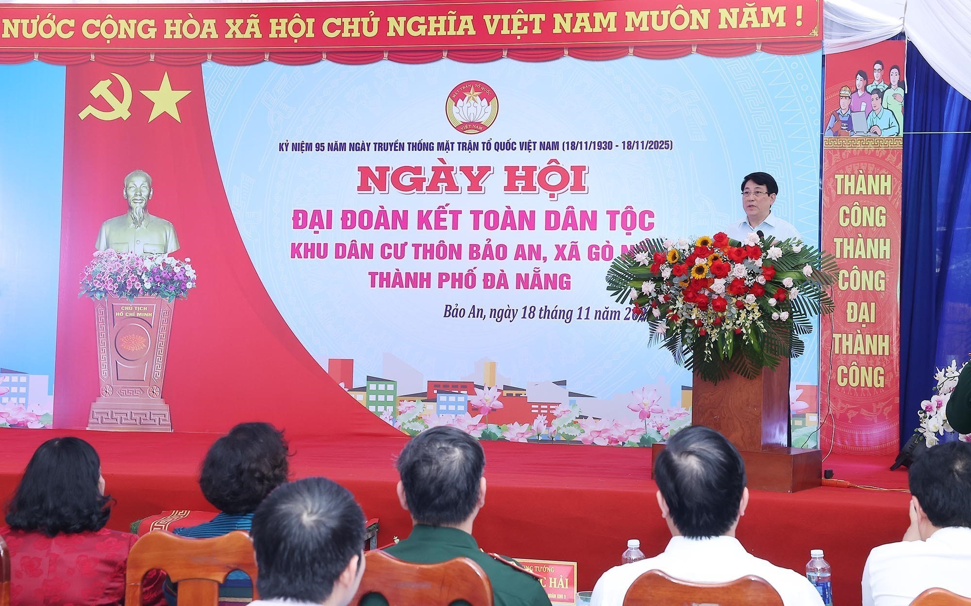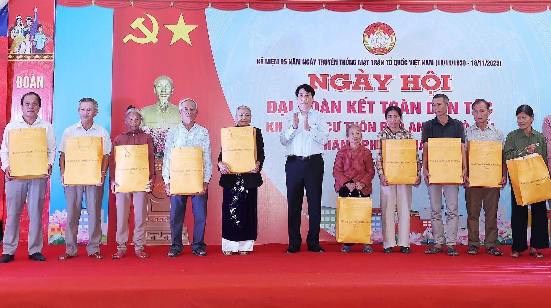Sáng 18/11, Chủ tịch nước Lương Cường đã dự Ngày hội Đại đoàn kết toàn dân tại Thôn Bảo An, xã Gò Nổi, thành phố Đà Nẵng nhân dịp 95 năm Ngày truyền thống Mặt trận Tổ quốc Việt Nam (18/11/1930 - 18/11/2025), cũng là Ngày Đại đoàn kết toàn dân năm 2025.