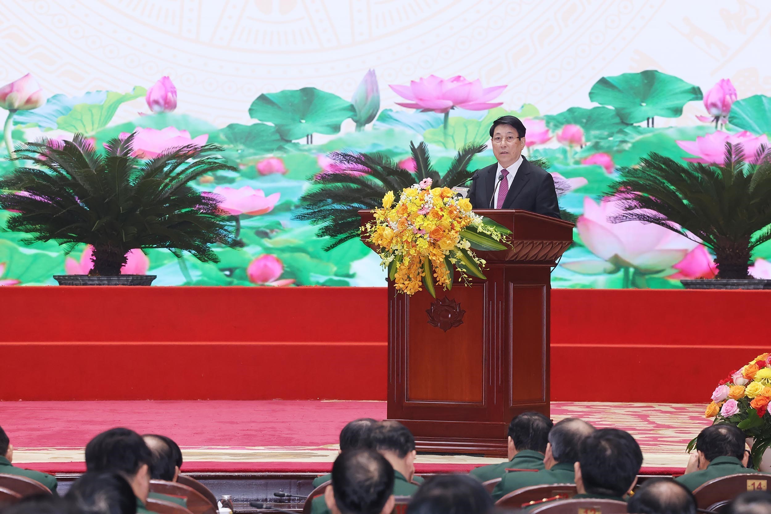 Ghi nhận những kết quả xuất sắc, đặc biệt xuất sắc trong năm 2025, thay mặt lãnh đạo Đảng, Nhà nước, Chủ tịch nước biểu dương và chúc mừng những thành tích mà Quân ủy Trung ương, Bộ Quốc phòng và cán bộ, chiến sĩ toàn quân đã nỗ lực, phấn đấu đạt được.