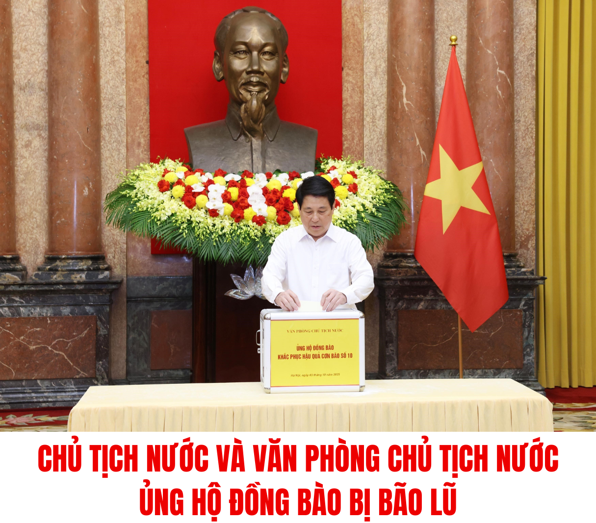 Với tinh thần “tương thân, tương ái”, “lá lành đùm lá rách”, Chủ tịch nước Lương Cường, lãnh đạo Văn phòng Chủ tịch nước và toàn thể cán bộ, công chức, viên chức, người lao động cơ quan Văn phòng Chủ tịch nước đã ủng hộ tối thiểu mỗi người một ngày lương, góp phần chung tay cùng cả nước hỗ trợ đồng bào các địa phương đang chịu ảnh hưởng nặng nề của bão lũ sớm khắc phục thiệt hại, ổn định cuộc sống.