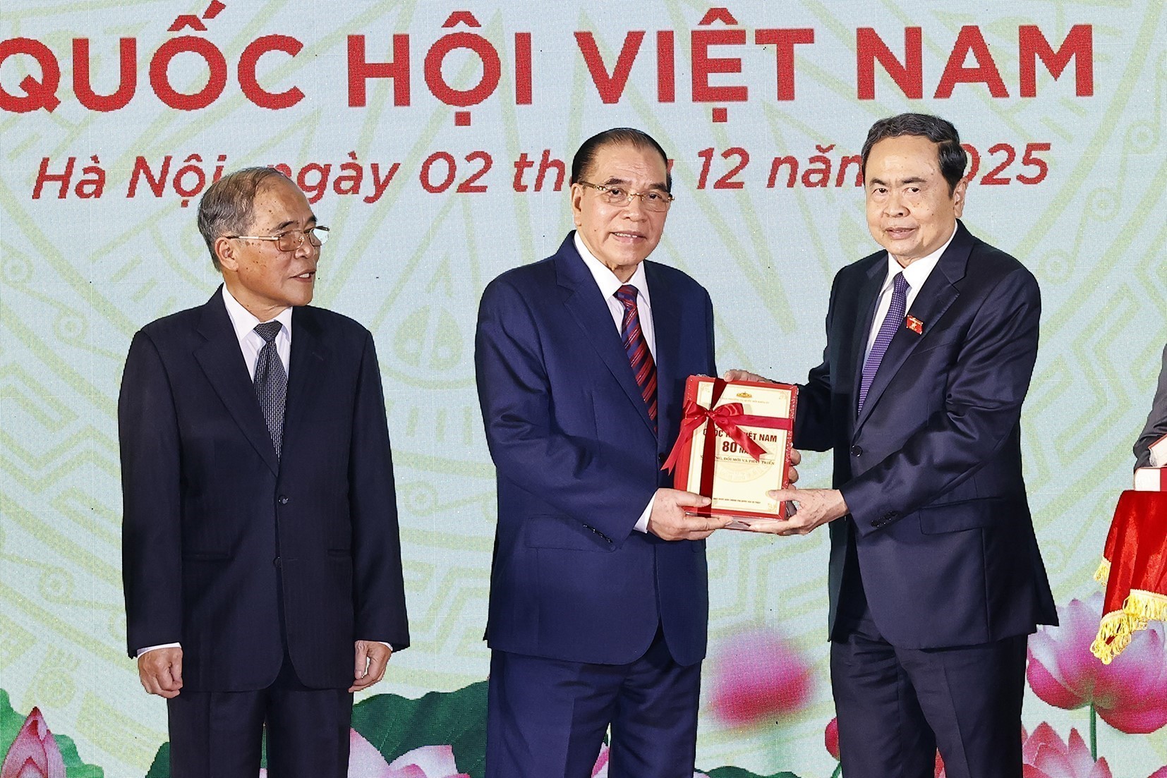 Chủ tịch Quốc hội Trần Thanh Mẫn, Phó Chủ tịch Thường trực Quốc hội Đỗ Văn Chiến và Phó Chủ tịch Quốc hội Nguyễn Khắc Định đã trao sách tặng nguyên Tổng Bí thư Nông Đức Mạnh, nguyên Chủ tịch Quốc hội Nguyễn Sinh Hùng, các Phó Chủ tịch Quốc hội, Ủy viên Ủy ban Thường vụ Quốc hội và các đại biểu. Trong đó có cuốn sách ảnh song ngữ "80 năm Quốc hội Việt Nam (1946-2026)" do Nhà xuất bản Thông tấn (Thông tấn xã Việt Nam) phối hợp với Vụ Thông tin và Thư viện (Văn phòng Quốc hội) tổ chức biên soạn, xuất bản. Với hơn 850 bức ảnh được trình bày khoa học theo trật tự thời gian, cuốn sách đã phản ánh sinh động quá trình hình thành và phát triển của Quốc hội Việt Nam, những sự kiện, hoạt động có tính chất bước ngoặt của 15 khóa Quốc hội, từ năm 1946 đến nay. Sách được trình bày trang trọng, hiện đại, thẩm mỹ.