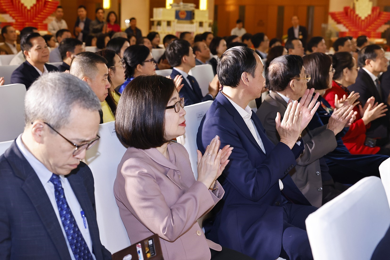 Cùng dự buổi lễ có: nguyên Tổng Bí thư Nông Đức Mạnh; nguyên Chủ tịch Quốc hội Nguyễn Sinh Hùng; Ủy viên Bộ Chính trị, Phó Chủ tịch Thường trực Quốc hội Đỗ Văn Chiến, Trưởng Ban Tổ chức Kỷ niệm 80 năm Quốc hội Việt Nam và Phó Chủ tịch Quốc hội Nguyễn Khắc Định, Phó Trưởng Ban Tổ chức Kỷ niệm 80 năm Quốc hội Việt Nam; Phó Chủ tịch Quốc hội Nguyễn Đức Hải, Phó Trưởng Ban Tổ chức Kỷ niệm 80 năm Quốc hội Việt Nam; Phó Chủ tịch Quốc hội Vũ Hồng Thanh; Phó Chủ tịch Quốc hội Lê Minh Hoan.