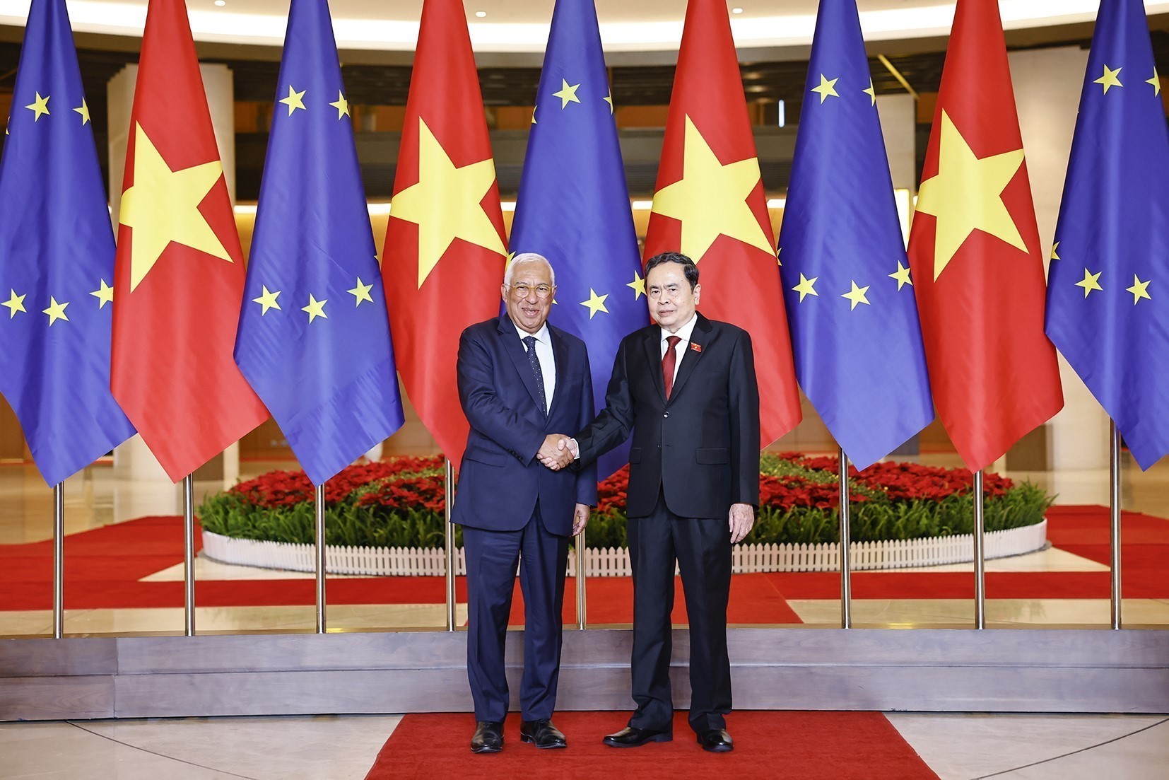 Chủ tịch Quốc hội Trần Thanh Mẫn hội kiến Chủ tịch Hội đồng châu Âu António Costa. Ảnh: Doãn Tấn - TTXVN