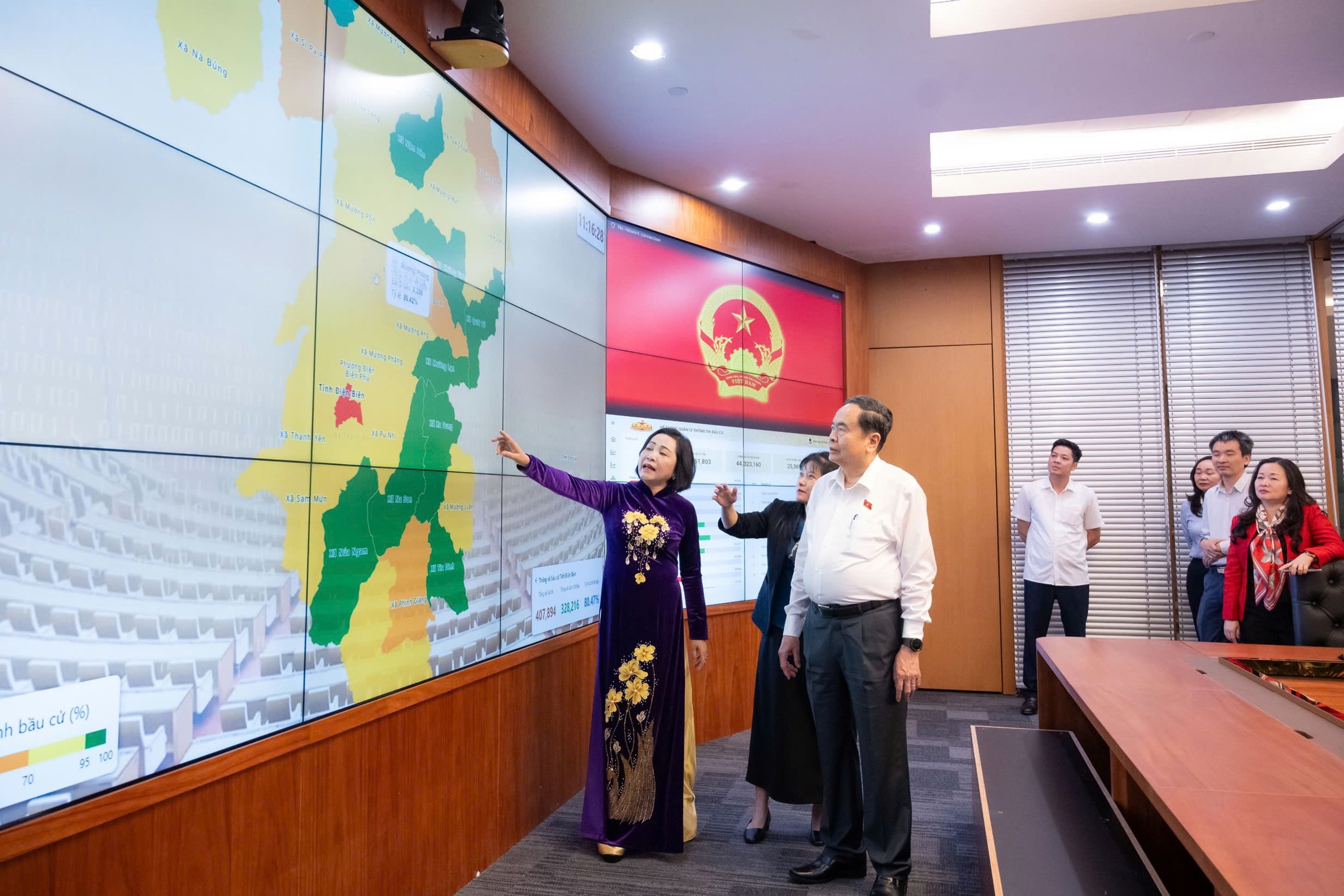 Chủ tịch Quốc hội Trần Thanh Mẫn kiểm tra công tác bầu cử tại Văn phòng Hội đồng Bầu cử quốc gia (Nhà Quốc hội, Hà Nội)