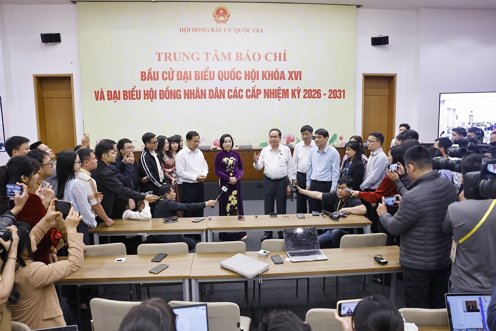 Sáng 15/3/2026, Chủ tịch Quốc hội Trần Thanh Mẫn, Chủ tịch Hội đồng Bầu cử quốc gia thăm Trung tâm báo chí Bầu cử đại biểu Quốc hội khoá XVI và đại biểu Hội đồng nhân dân các cấp nhiệm kỳ 2026-2031, đến kiểm tra công tác bầu cử tại Văn phòng Hội đồng Bầu cử quốc gia (Nhà Quốc hội, Hà Nội).