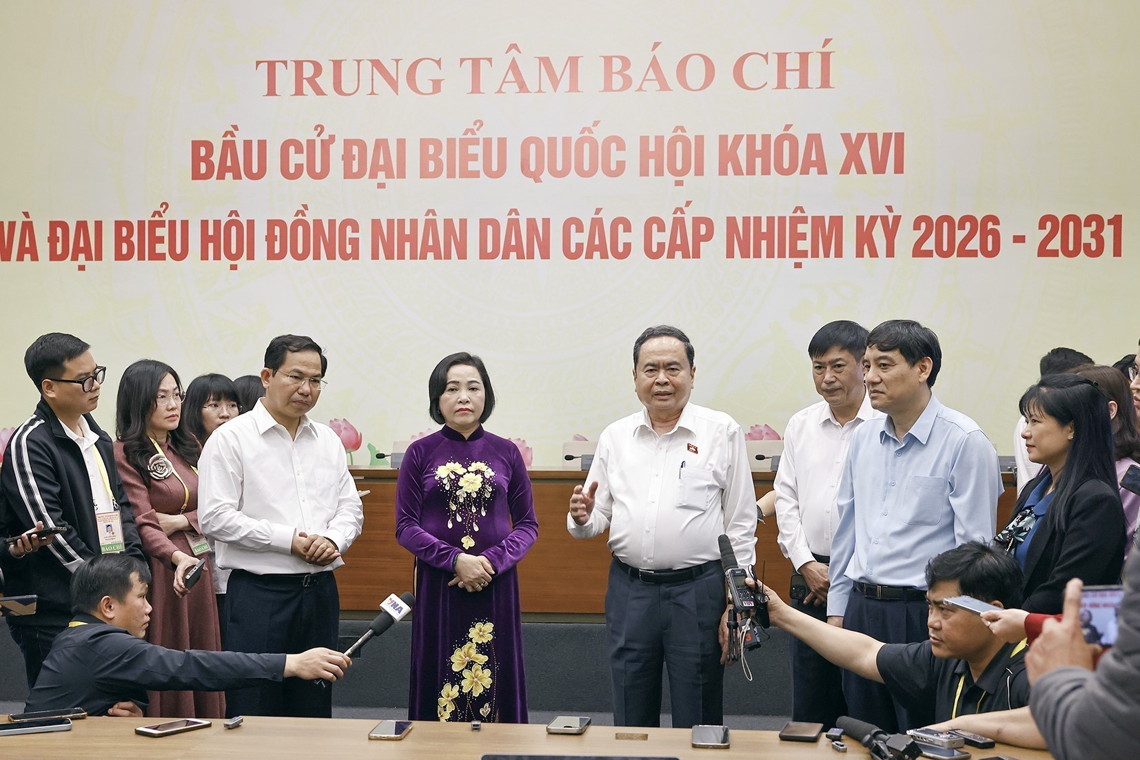 Chủ tịch Quốc hội Trần Thanh Mẫn thăm và phát biểu tại Trung tâm báo chí (Nhà Quốc hội, Hà Nội)