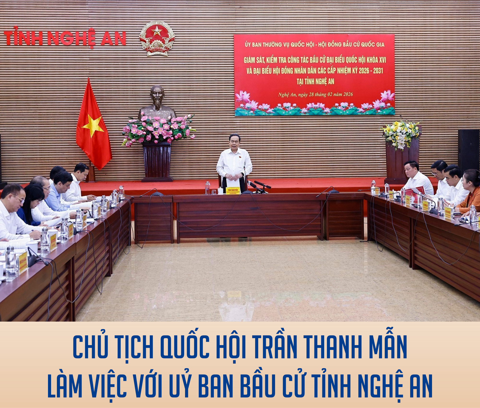 Sáng 28/2/2026, tại Nghệ An, Ủy viên Bộ Chính trị, Chủ tịch Quốc hội Trần Thanh Mẫn, Chủ tịch Hội đồng Bầu cử quốc gia làm trưởng đoàn giám sát, kiểm tra công tác bầu cử làm việc với Uỷ ban Bầu cử tỉnh Nghệ An.