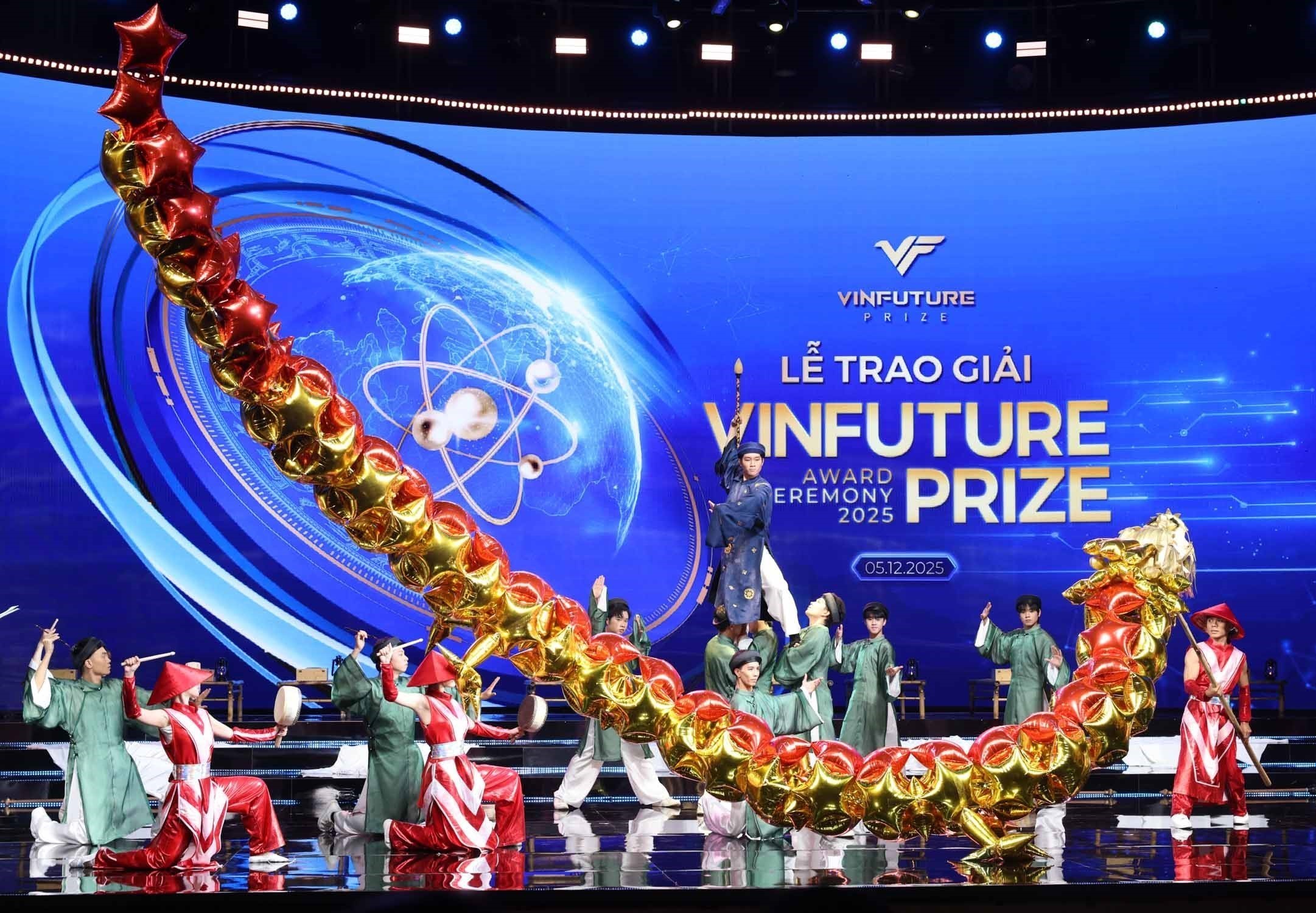 Xuyên suốt Lễ trao giải, thông điệp "Cùng vươn mình - Cùng thịnh vượng" của VinFuture 2025 được kể lại bằng ngôn ngữ nghệ thuật đương đại, kết hợp cùng bản sắc Việt Nam. Những tiết mục được chuẩn bị công phu tái hiện hành trình 5 năm của VinFuture: Từ khởi nguồn khát vọng đến những tác động mang tầm toàn cầu. Bên cạnh các ngôi sao khoa học, sân khấu Lễ trao giải VinFuture 2025 có sự xuất hiện của Alicia Keys - biểu tượng âm nhạc toàn cầu, chủ nhân của 17 tượng vàng Grammy danh giá. Trong khi đó, quán quân Intervision 2025 Đức Phúc, trong lần đầu góp mặt, mang đến phần biểu diễn kết hợp nét đẹp văn hóa dân tộc với âm nhạc hiện đại, khắc họa một Việt Nam giàu bản sắc và đang vươn mình mạnh mẽ trên hành trình hội nhập.