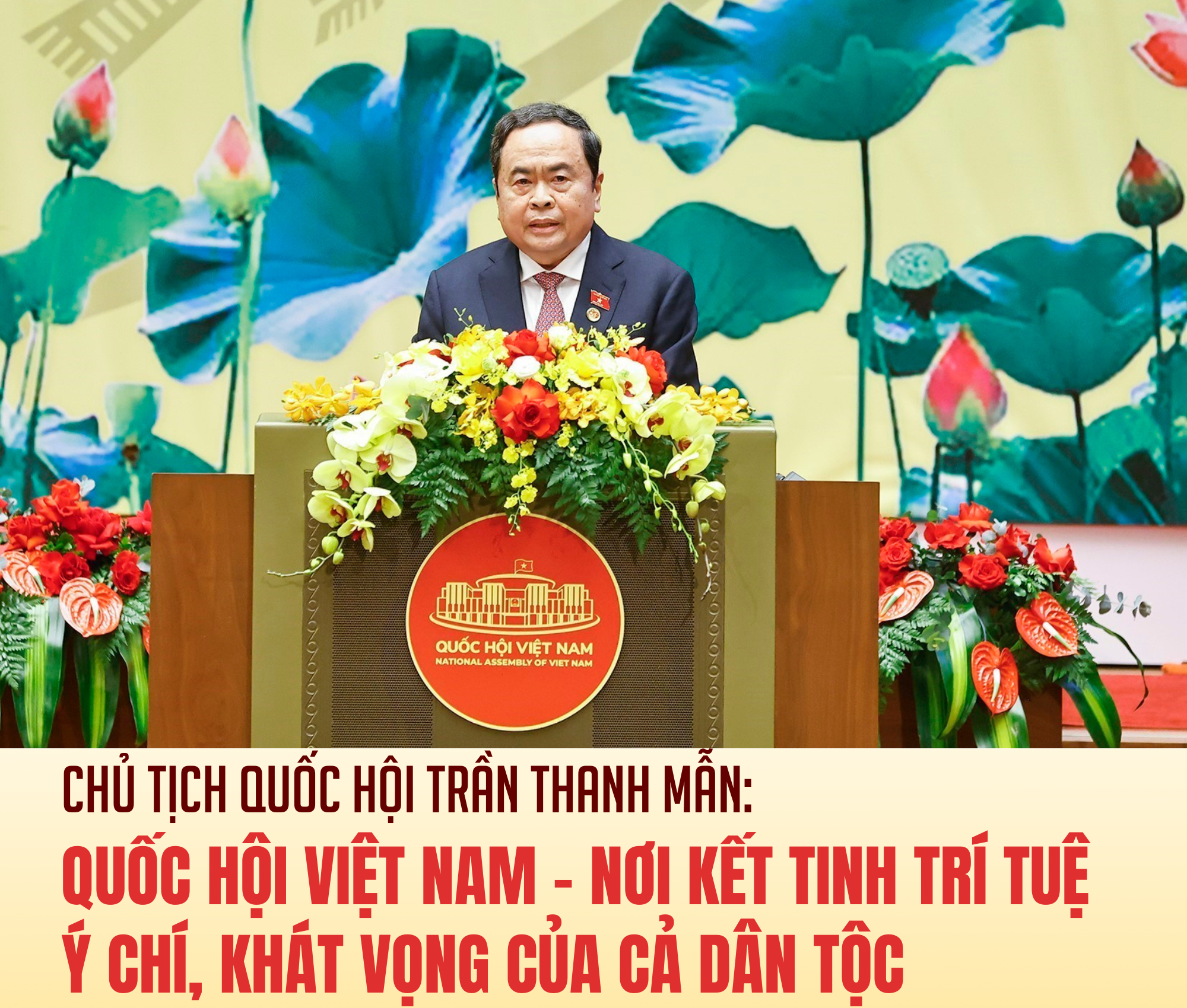 Nhân dịp này, thay mặt Quốc hội, Chủ tịch Quốc hội bày tỏ lòng biết ơn sâu sắc đến toàn thể cử tri và nhân dân cả nước đã tin tưởng, trao trọng trách cho đại biểu Quốc hội; trân trọng cảm ơn sự lãnh đạo của Ban Chấp hành Trung ương Đảng, Bộ Chính trị, Ban Bí thư; trân trọng ghi nhận về những cống hiến quý báu của các nguyên lãnh đạo Quốc hội, các đại biểu Quốc hội các khóa; sự phối hợp chặt chẽ, kịp thời, hiệu quả của Chủ tịch nước, Chính phủ, Ủy ban Trung ương Mặt trận Tổ quốc Việt Nam, Tòa án nhân dân tối cao, Viện kiểm sát nhân dân tối cao, các ban, bộ, ngành trung ương; cấp ủy đảng, chính quyền, đoàn thể các địa phương; các cơ quan, tổ chức hữu quan và sự hợp tác, giúp đỡ chân thành, hiệu quả của bạn bè quốc tế.