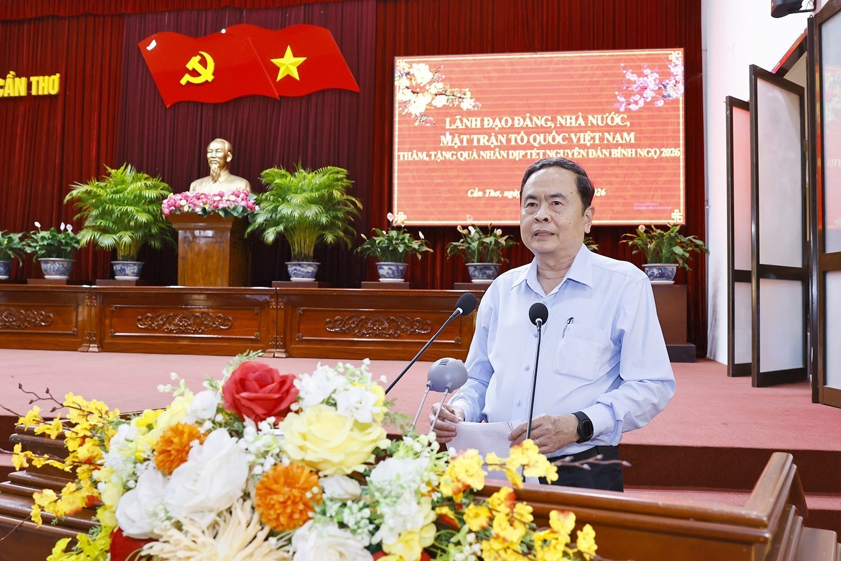Thay mặt lãnh đạo Đảng, Nhà nước, Chủ tịch Quốc hội gửi tới các gia đình chính sách, lực lượng vũ trang, hộ nghèo, cận nghèo, công nhân lao động và nhân dân thành phố Cần Thơ lời thăm hỏi ân cần, lời chúc mừng tốt đẹp nhất.