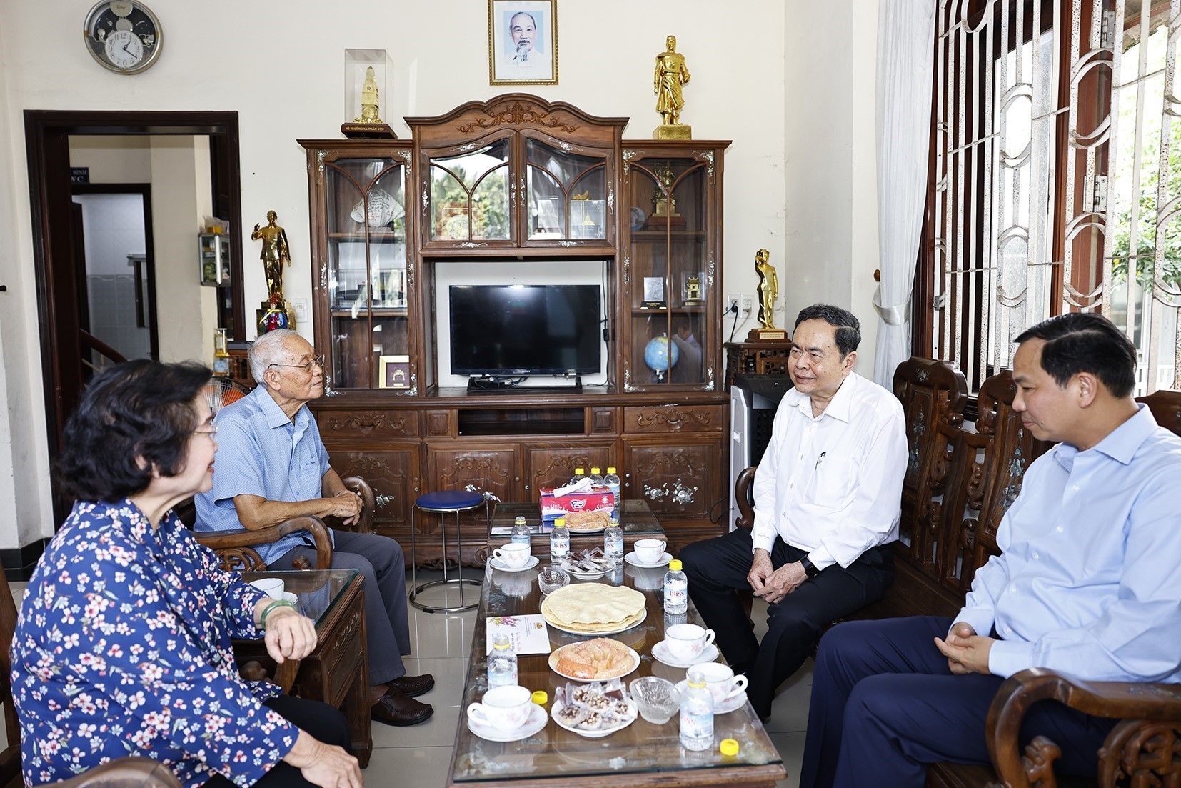 Chủ tịch Quốc hội Trần Thanh Mẫn đến thăm, chúc Tết gia đình đồng chí Trương Mỹ Hoa, nguyên Phó Chủ tịch nước, nguyên Phó Chủ tịch Quốc hội. Ảnh: Doãn Tấn - TTXVN