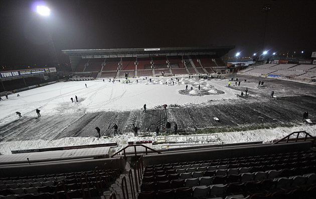Nhưng trận đấu cuối cùng vẫn bị hoãn vì tuyết quá nhiều