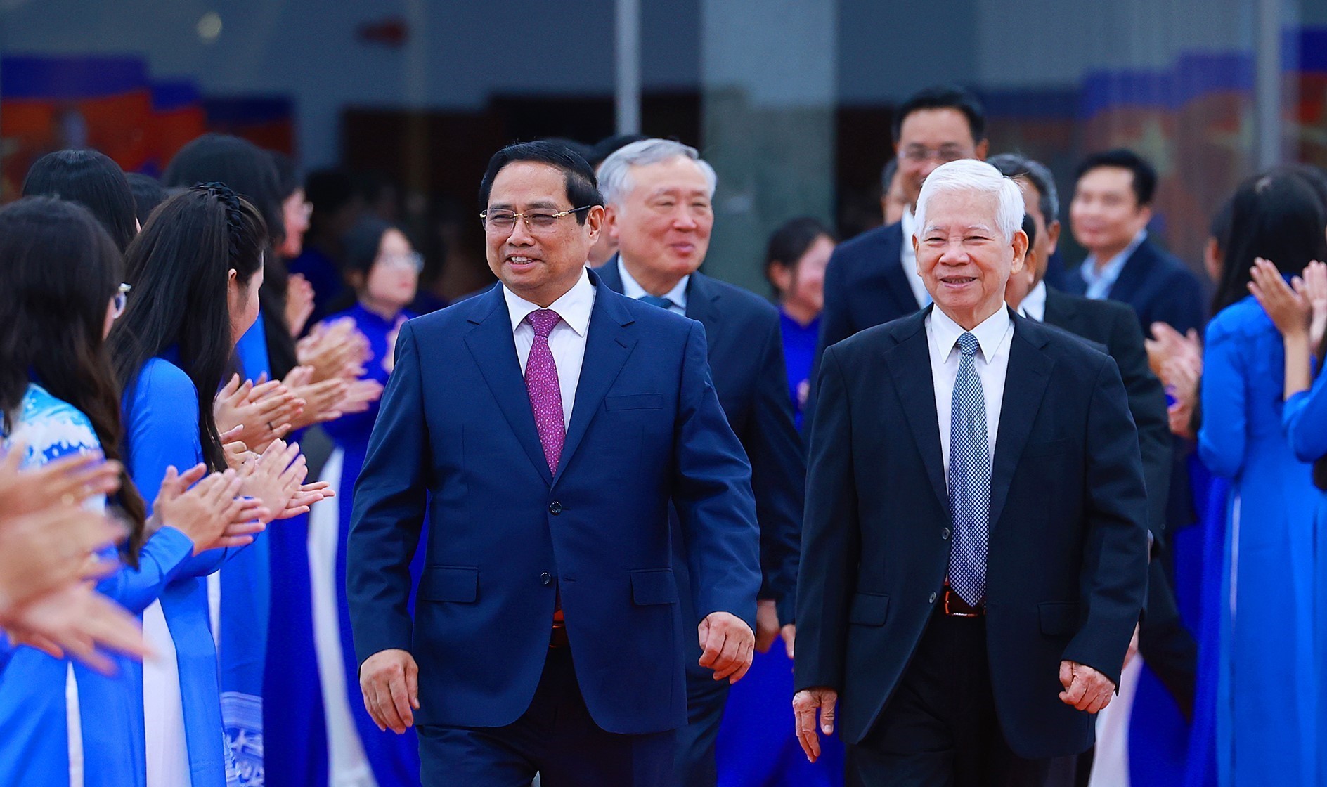 Thủ tướng Phạm Minh Chính đến dự Chương trình nghệ thuật chính luận “Thủ tướng Phạm Văn Đồng - trọn đời vì nước, vì dân”. Ảnh: Dương Giang-TTXVN