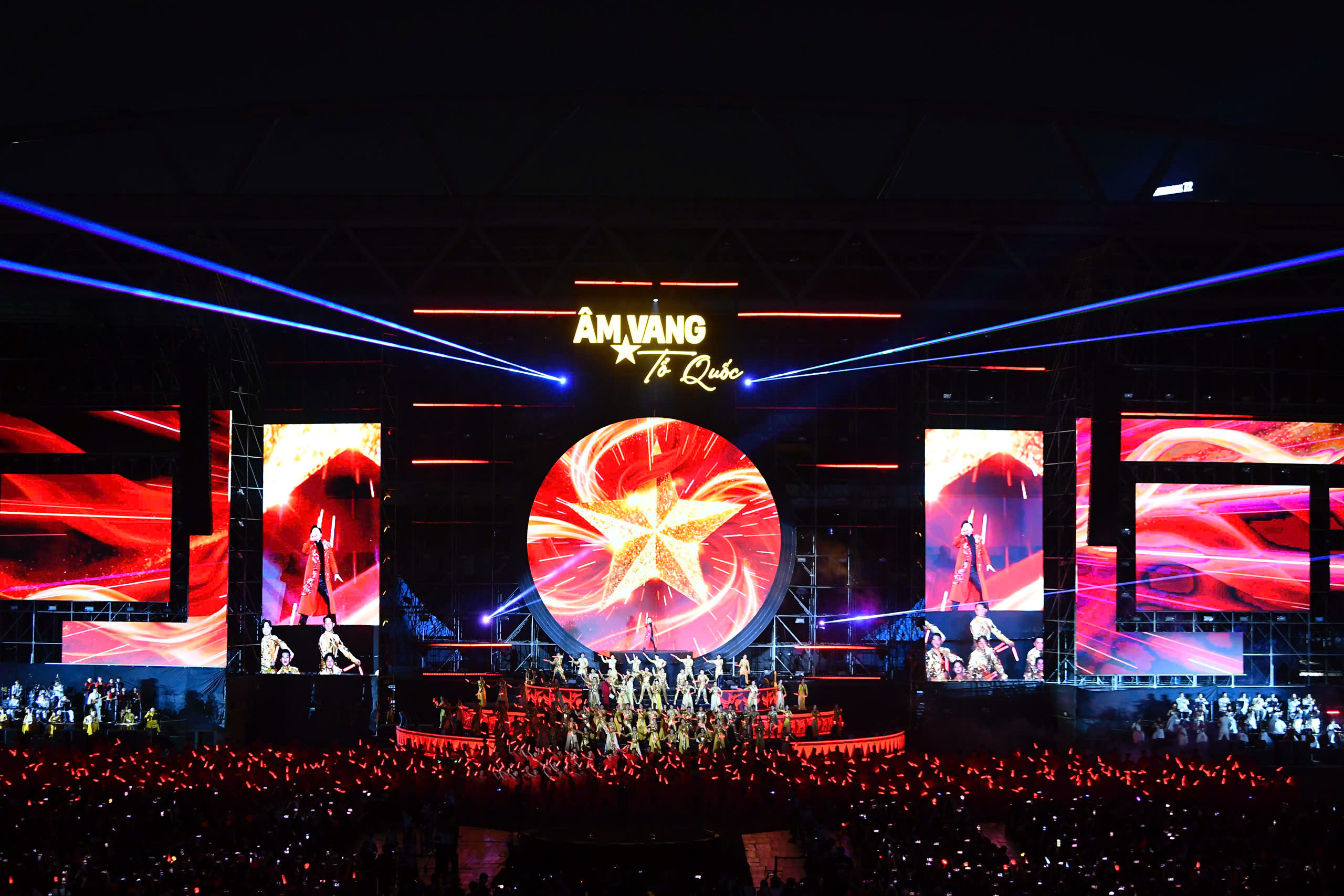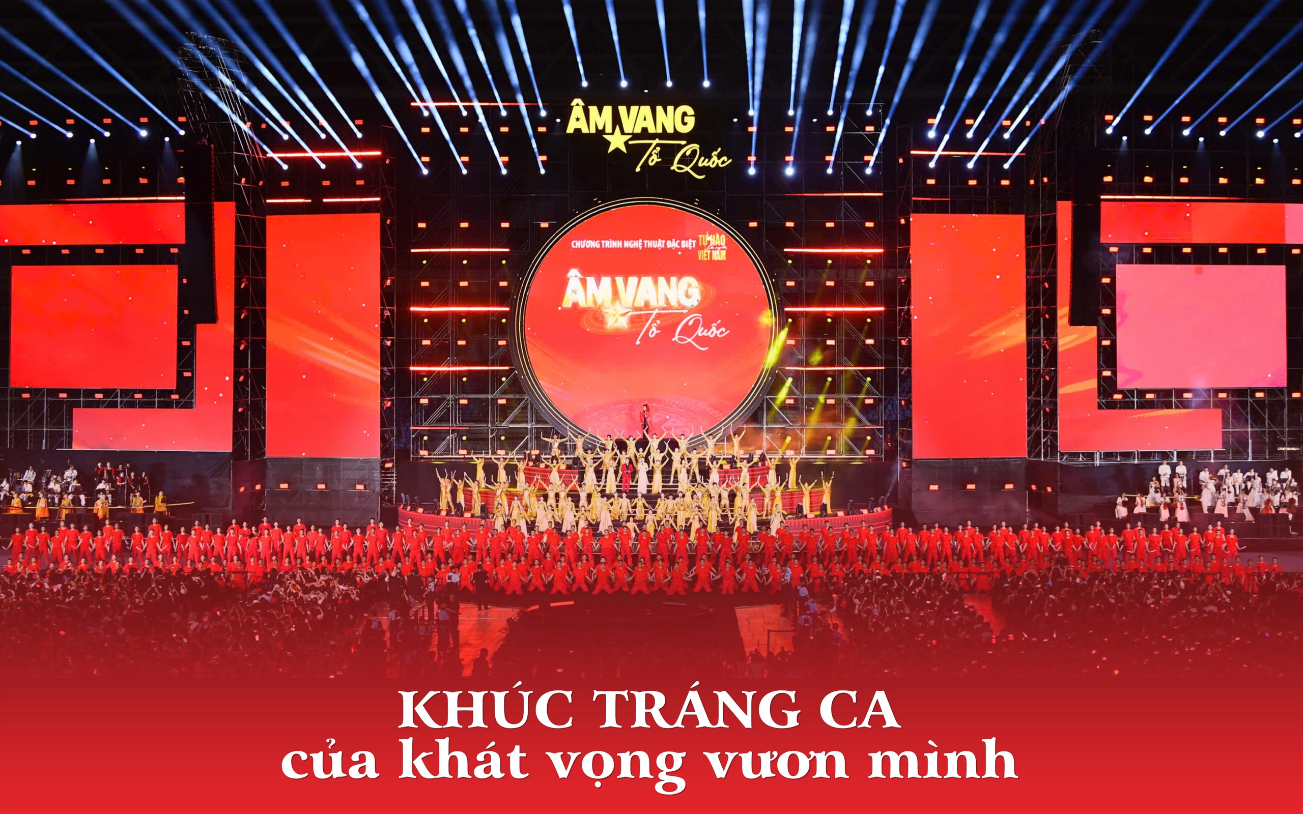 Với sự tham gia của 40.000 khán giả cùng hệ thống dàn dựng khổng lồ, chương trình nghệ thuật chính luận đặc biệt "Âm vang Tổ quốc" đã vượt xa giới hạn của một đêm đại nhạc hội thông thường.
