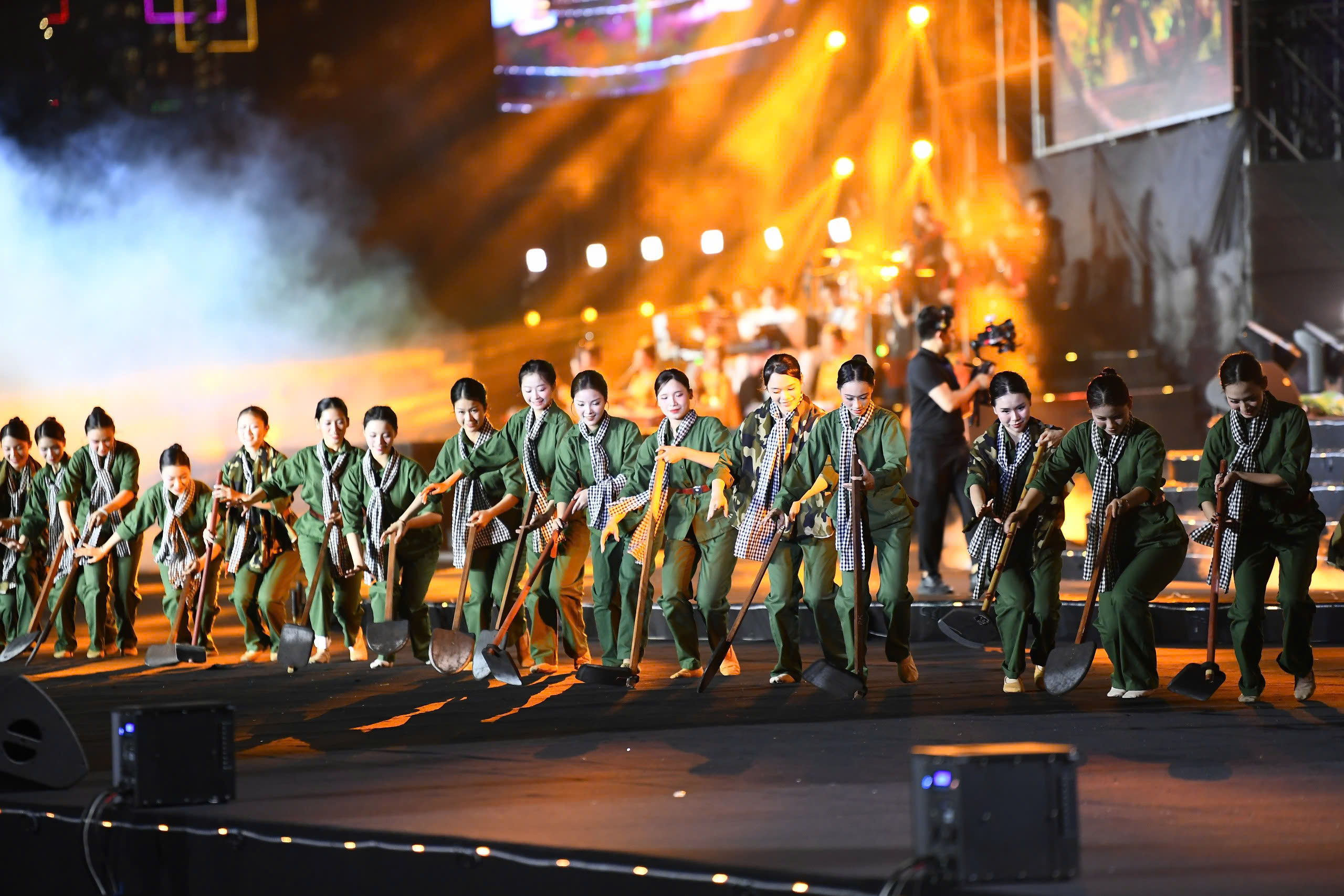 Việc lấp đầy Sân vận động Mỹ Đình bằng âm nhạc, ánh sáng và cảm xúc luôn là một bài toán khó, đòi hỏi tư duy bao quát nhạy bén đối với bất kỳ ê-kíp sản xuất nào. Dưới sự chỉ đạo của Tổng đạo diễn Nguyễn Trung Dũng và Tổng Biên đạo NSƯT Thanh Hằng, một khối lượng nhân sự khổng lồ gồm hơn 2.000 nghệ sĩ, diễn viên cùng lực lượng vũ trang đã được tổ chức thành một khối thống nhất, tạo ra những luồng thị giác áp đảo.