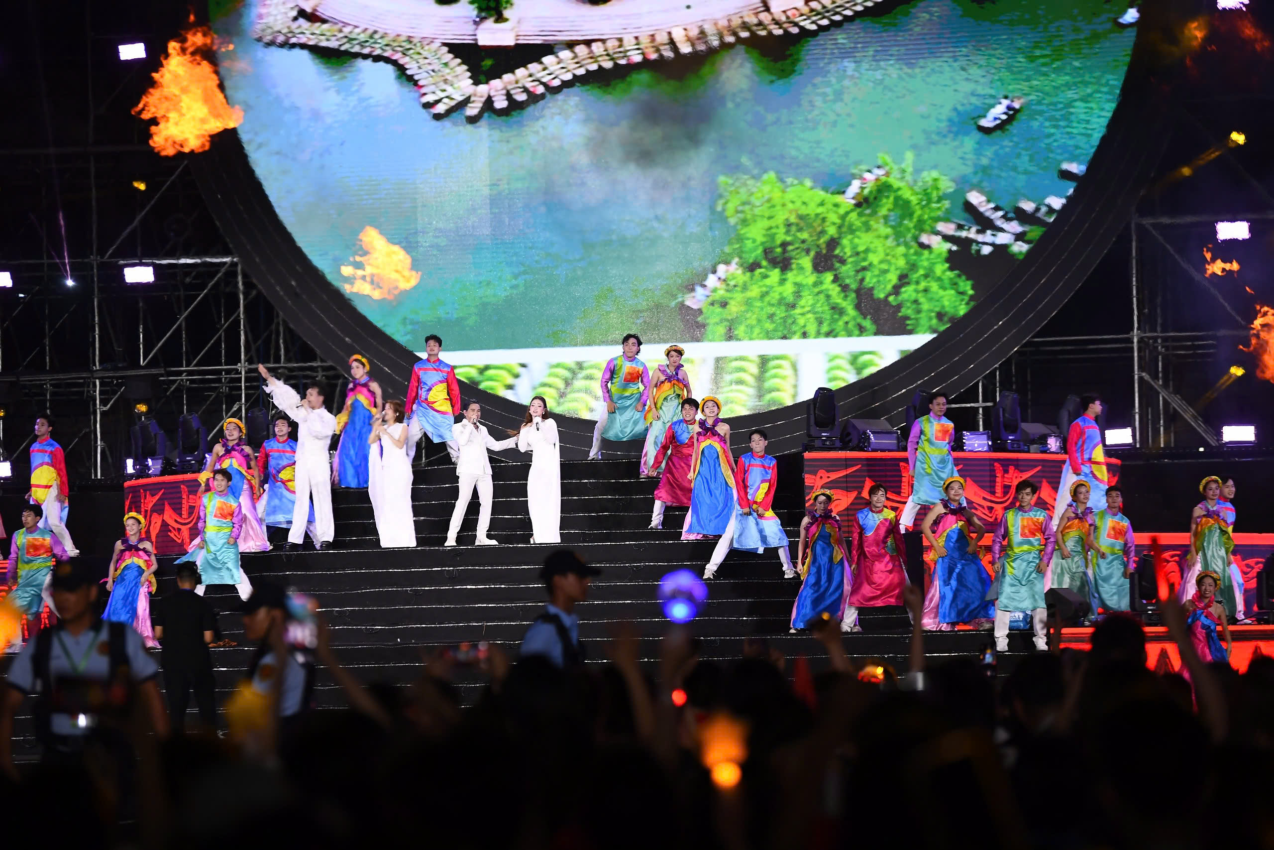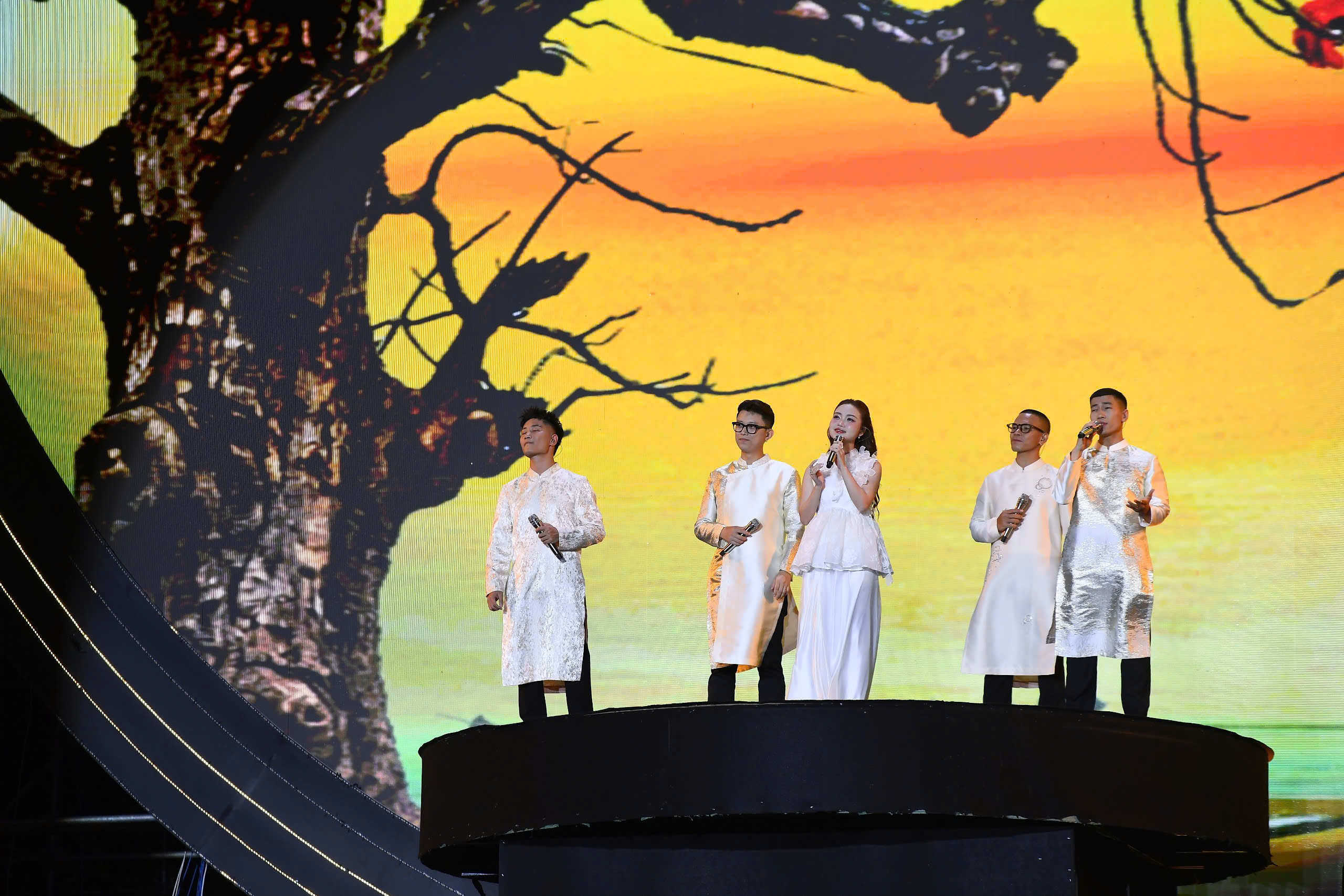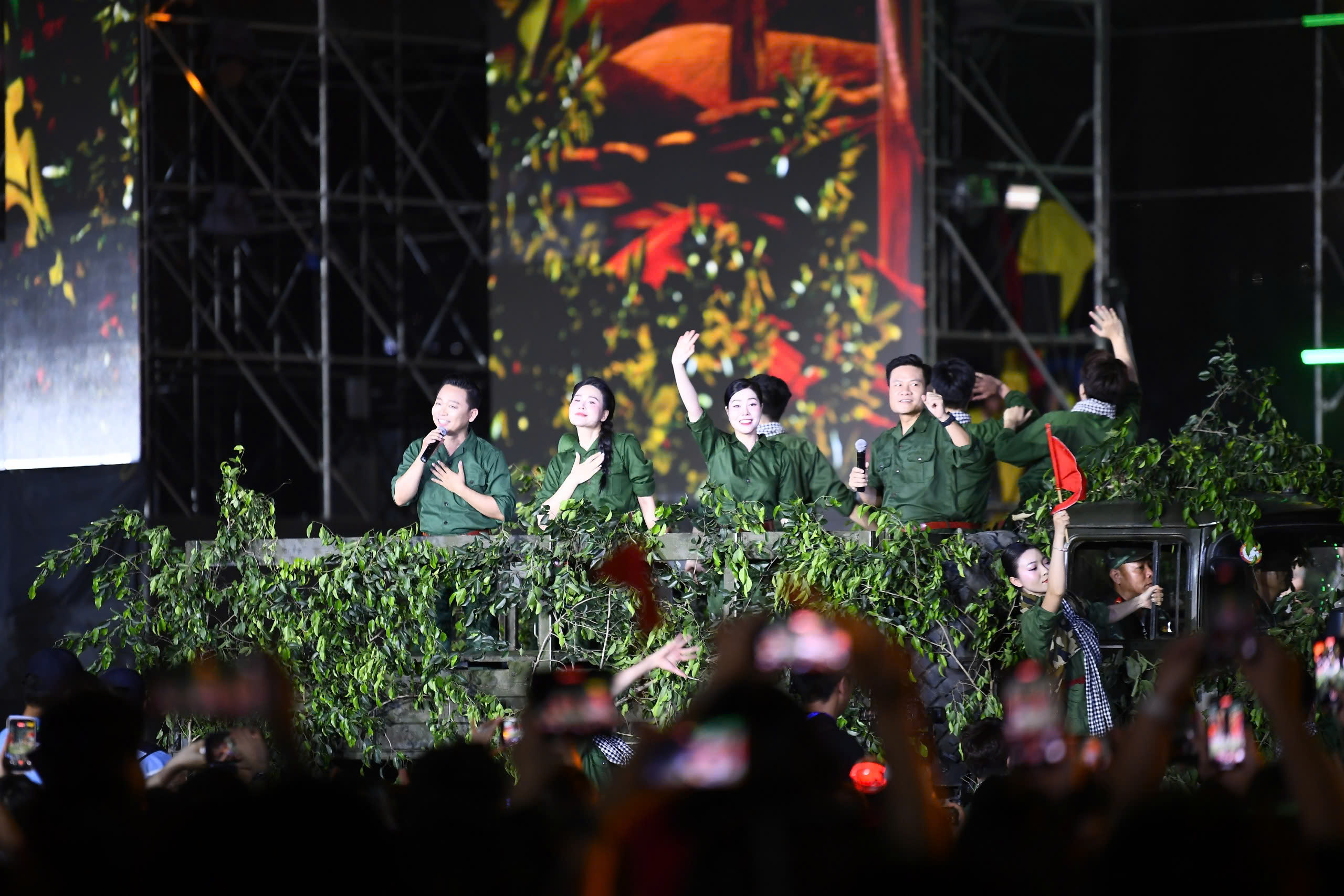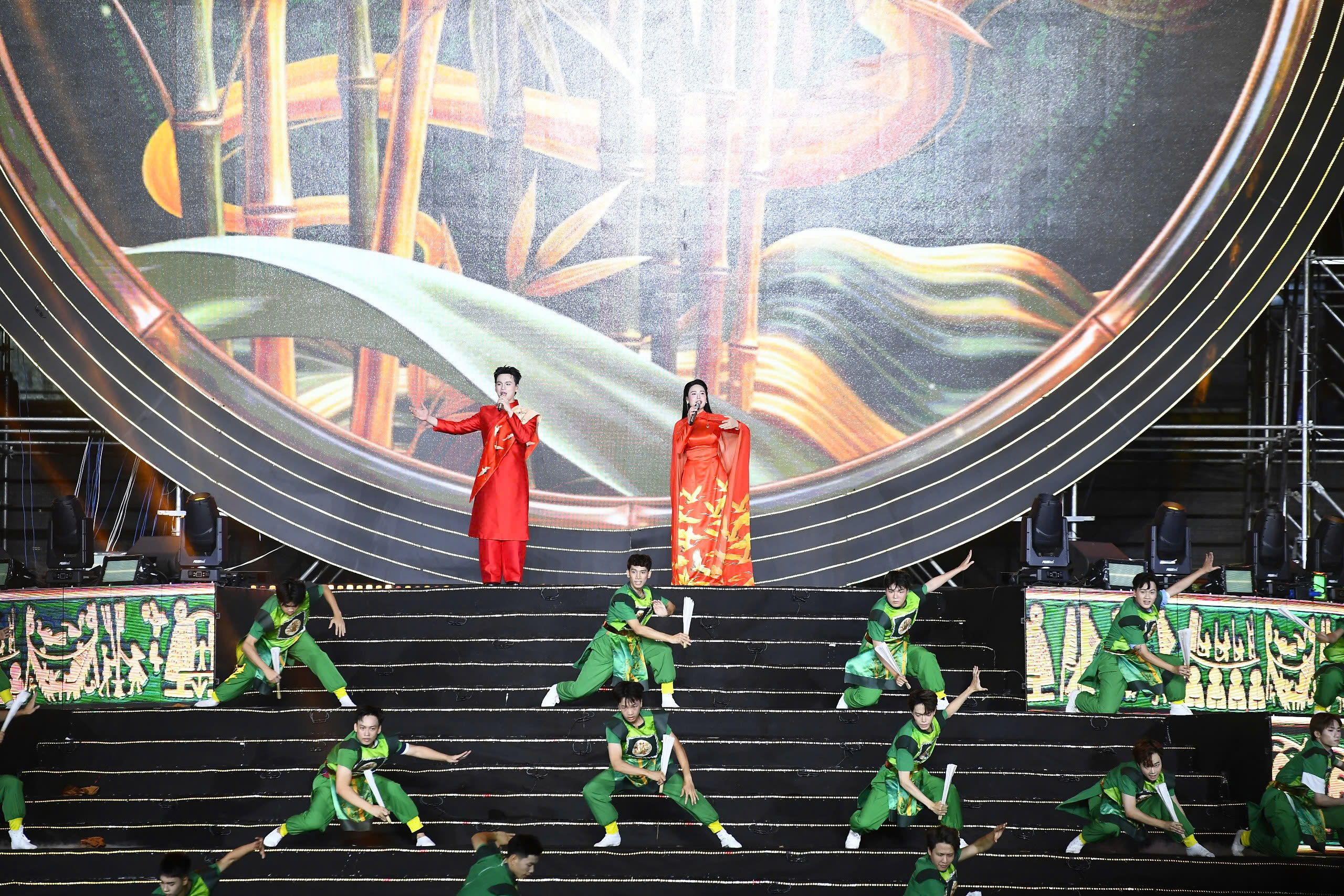 Điểm thành công đầu tiên, đập ngay vào thị giác của Âm vang Tổ quốc nằm ở năng lực làm chủ một không gian biểu diễn khổng lồ.