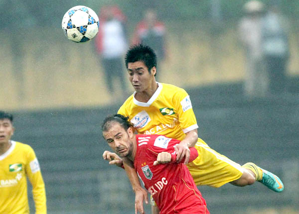 Kesley (áo đỏ) phải làm đơn khiếu nại gửi lên VFF mới đòi được nợ từ CLB XMXT.SG. Ảnh: VSI