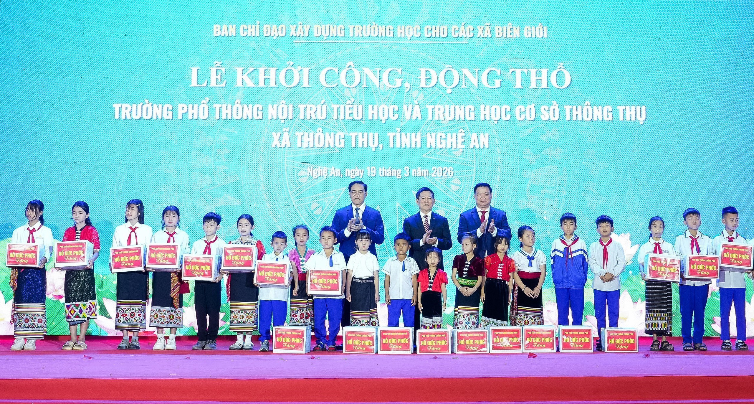 Sáng 19/3/2026, tại xã Thông Thụ, Phó Thủ tướng Chính phủ Hồ Đức Phớc dự Lễ khởi công xây dựng 11 trường phổ thông nội trú liên cấp tại các xã biên giới của tỉnh Nghệ An