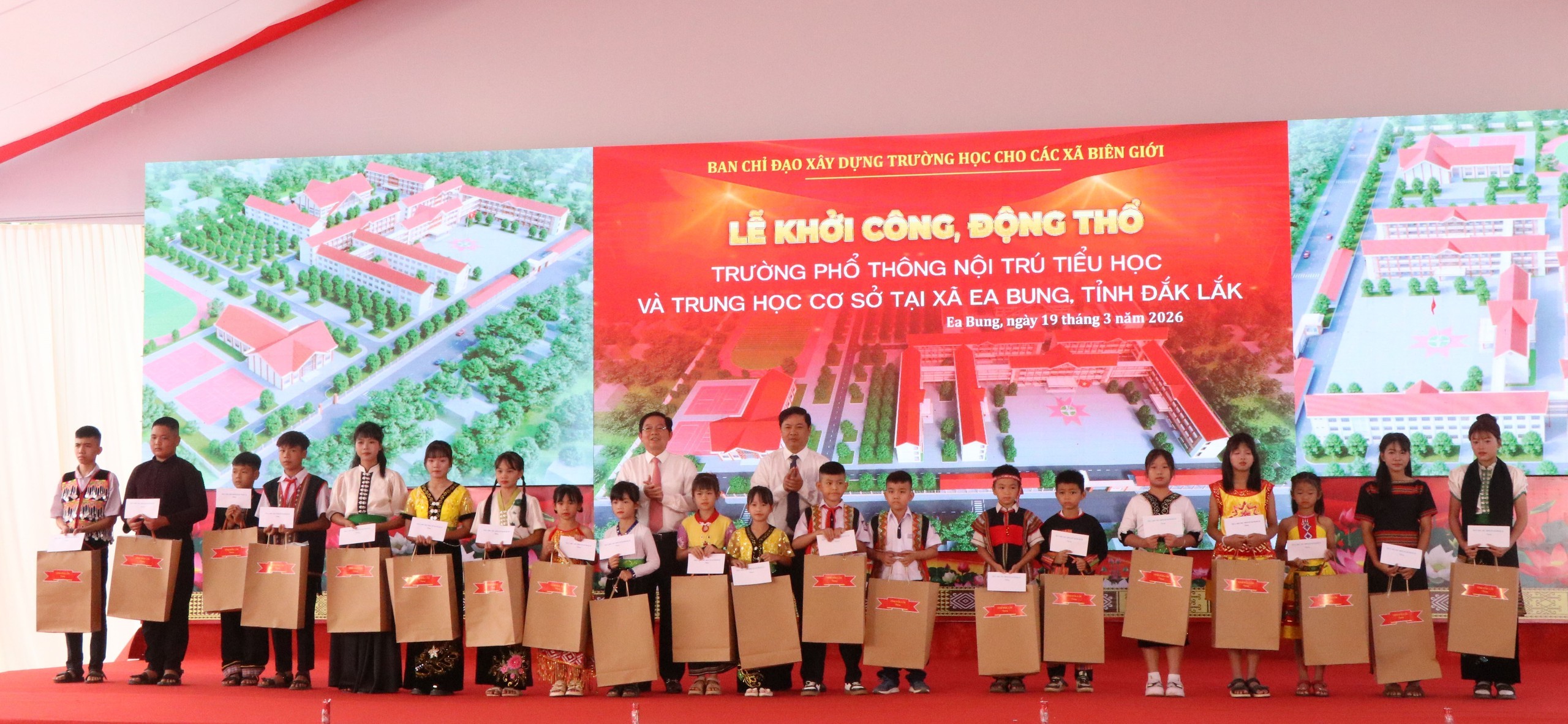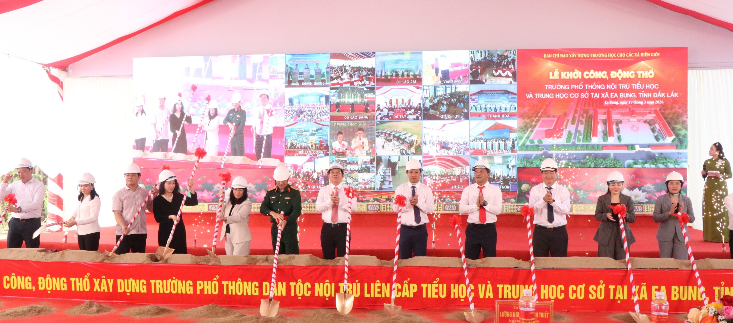 Sáng 19/3 đã diễn ra Lễ khởi công, động thổ đồng loạt các trường phổ thông nội trú liên cấp Tiểu học và Trung học Cơ sở tại các xã biên giới đất liền năm 2026