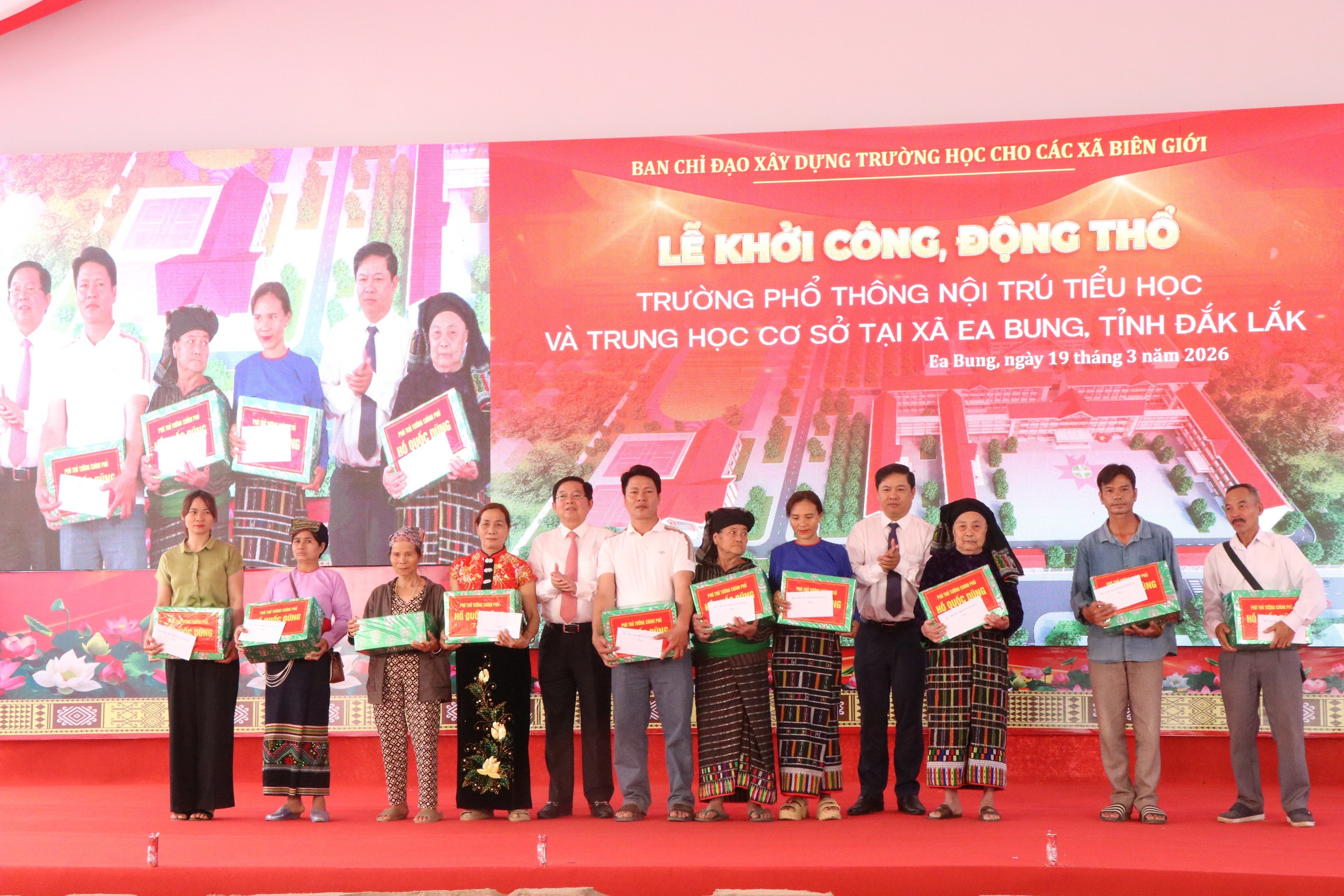 Sáng 19/3/2026, tại xã biên giới Ea Bung (tỉnh Đắk Lắk), Phó Thủ tướng Chính phủ Hồ Quốc Dũng dự Lễ khởi công xây dựng trường Phổ thông nội trú liên cấp Tiểu học và Trung học cơ sở xã Ea Bung