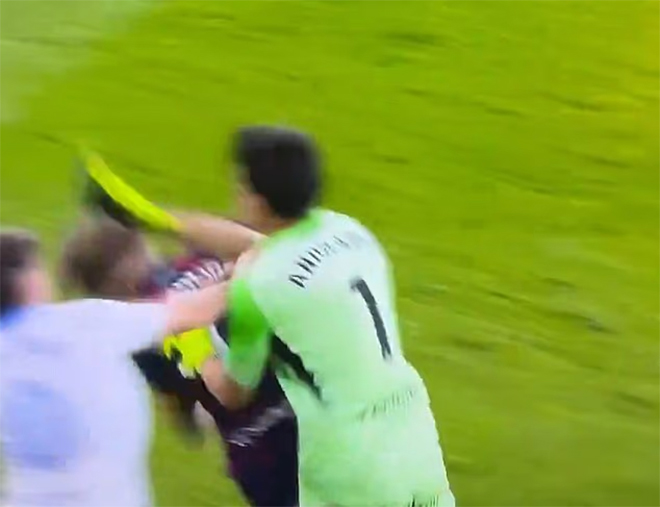 Sự việc nhanh chóng leo thang thành một cuộc hỗn chiến lớn, trong đó thủ môn bên phía Huesca, Dani Jimenez, cũng lao vào và tung cú đấm trả đũa vào phía sau đầu Andrada.