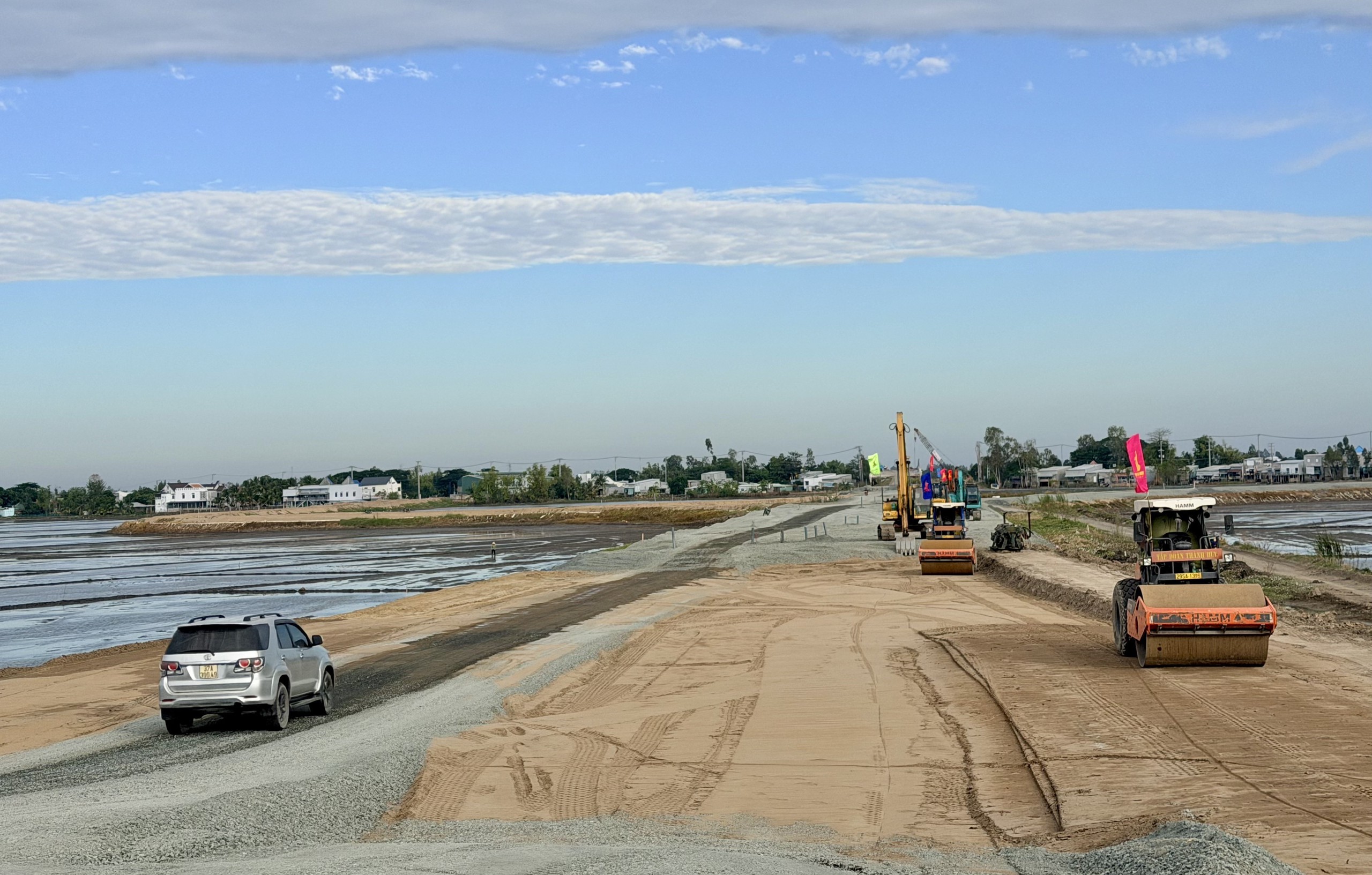 Dự án cao tốc Châu Đốc – Cần Thơ – Sóc Trăng đoạn qua địa bàn xã Vĩnh An, tỉnh An Giang đã hoàn thành cấp phối đá dăm đủ điều kiện thông xe kỹ thuật. Ảnh: Thanh Sang-TTXVN
