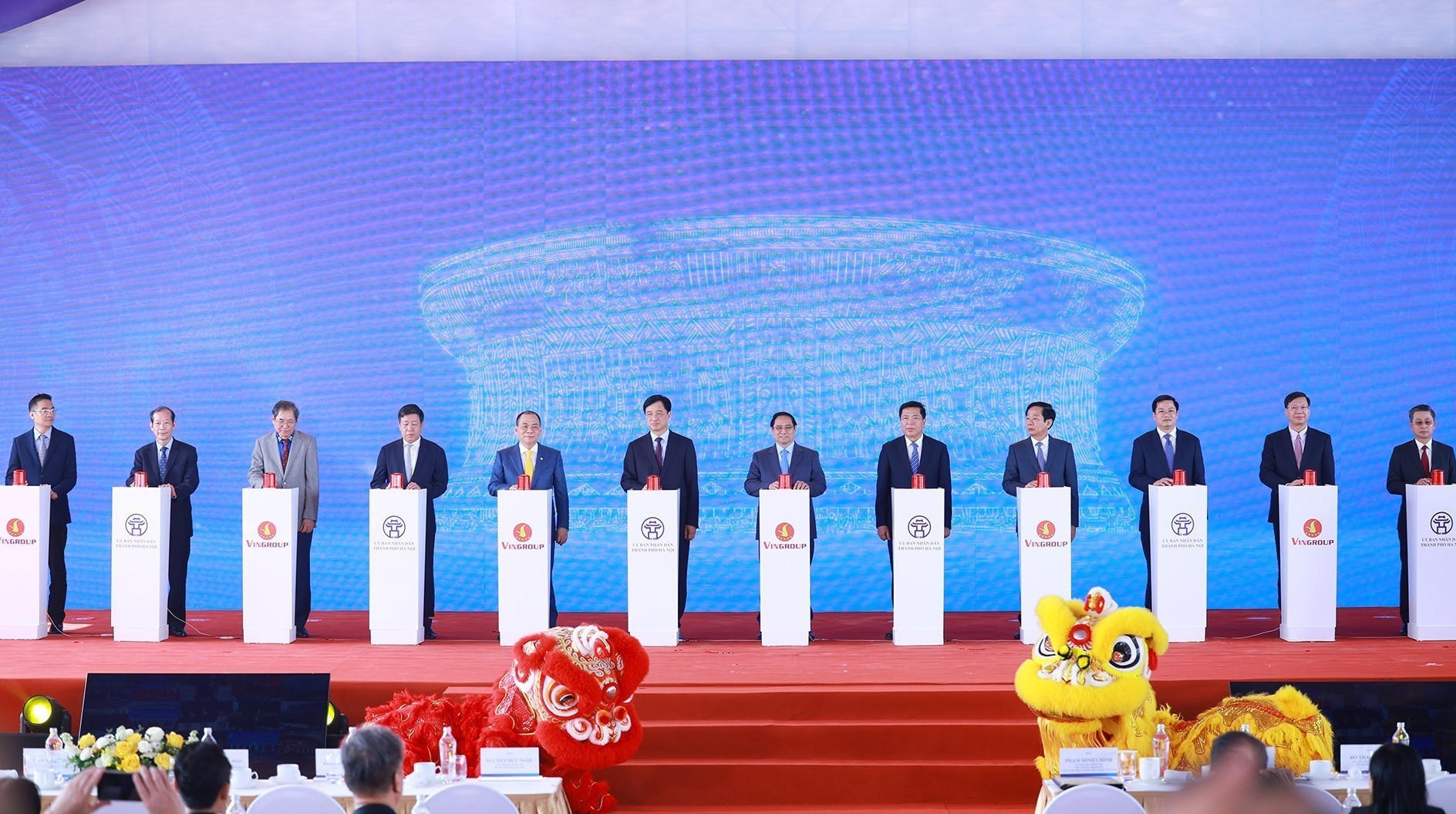 Thủ tướng Phạm Minh Chính dự khởi công Dự án đầu tư xây dựng Khu đô thị thể thao Olympic, Hà Nội. Ảnh: Dương Giang-TTXVN