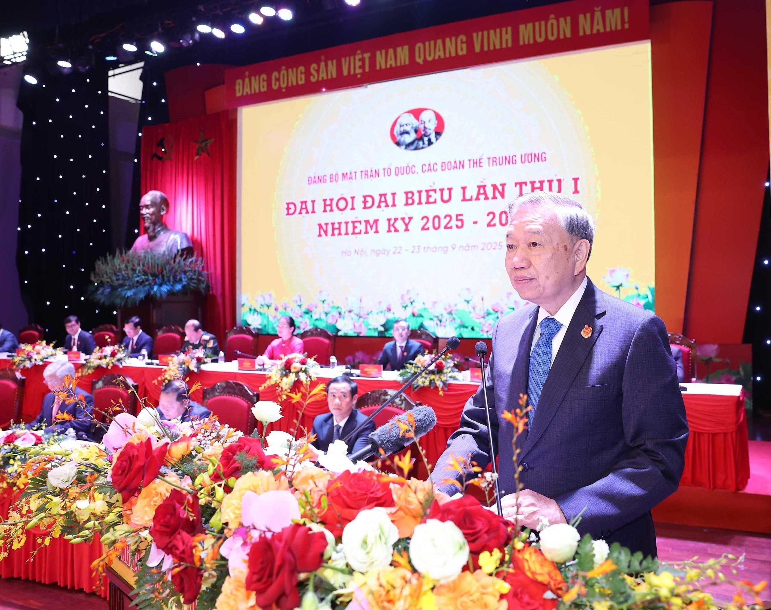 Tổng Bí thư Tô Lâm phát biểu chỉ đạo tại Đại hội đại biểu Đảng bộ Mặt trận Tổ quốc, các đoàn thể Trung ương lần thứ nhất