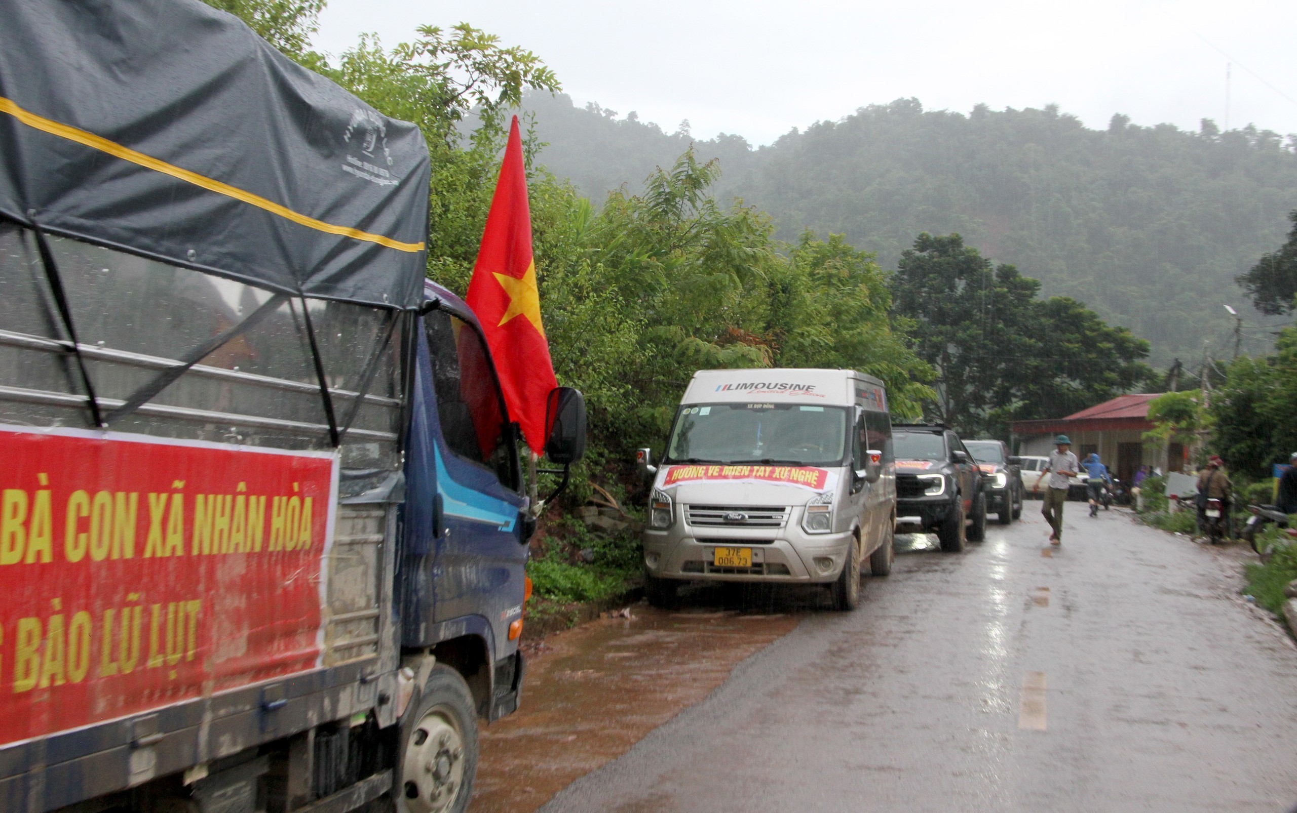 Đoàn thiện nguyện cùng các đơn vị vận chuyển hàng cứu trợ vào bản Lau, huyện Tương Dương (Nghệ An)