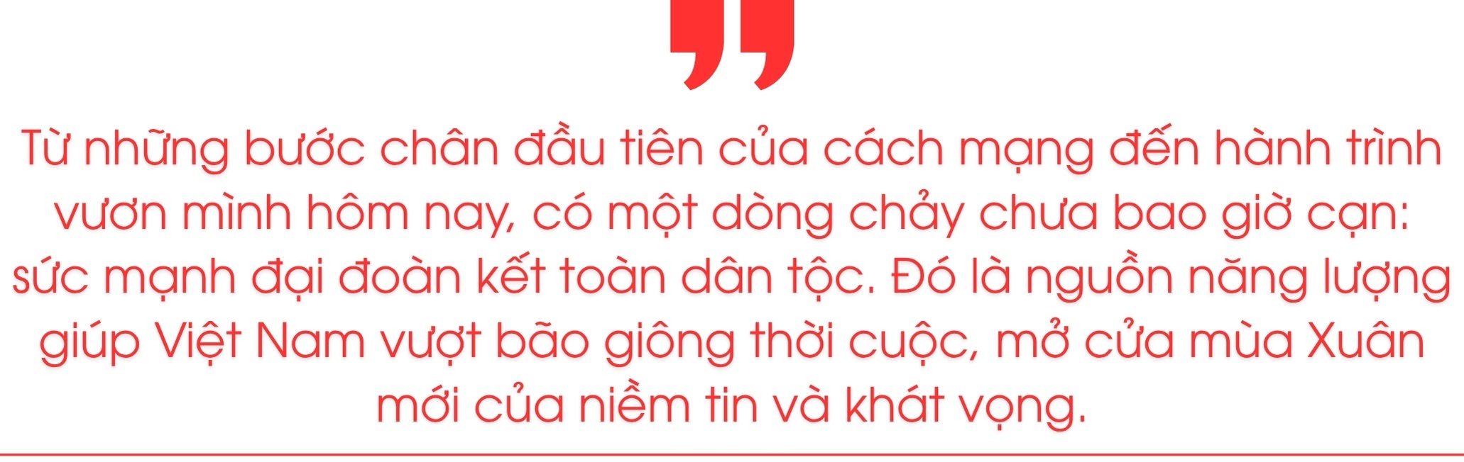 Từ Hội Phản đế Đồng minh năm 1930 đến Mặt trận Tổ quốc Việt Nam ngày nay, tinh thần đại đoàn kết luôn là chiếc "kiềng ba chân" nâng đỡ mọi thời khắc lớn lao của đất nước. Dưới ngọn cờ của Đảng và tư tưởng Hồ Chí Minh, đoàn kết trở thành kim chỉ nam, thành chiến lược xuyên suốt để quy tụ mọi tầng lớp nhân dân Việt Nam – những con người có thể khác nhau về tôn giáo, vùng miền, nghề nghiệp..., nhưng chung một tình yêu Tổ quốc.