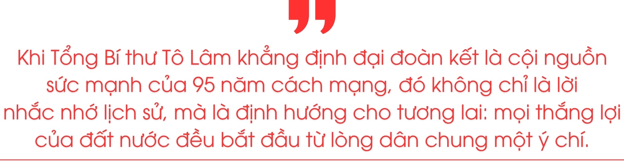 95 năm qua, dân tộc Việt Nam đã chứng minh một chân lý: đoàn kết làm nên mọi thắng lợi. Từ một đất nước bị bao vây, chia cắt, Việt Nam đã trở thành quốc gia đang vươn lên mạnh mẽ với khát vọng hùng cường và hội nhập sâu rộng.