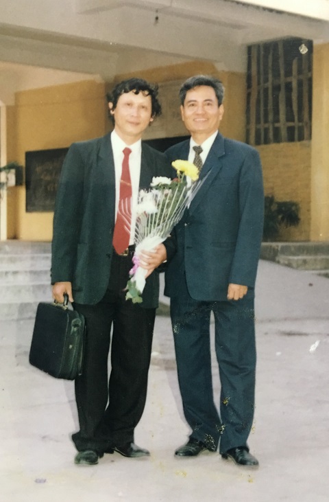 Nhà thơ Đặng Hiển (bên phải) và bạn học