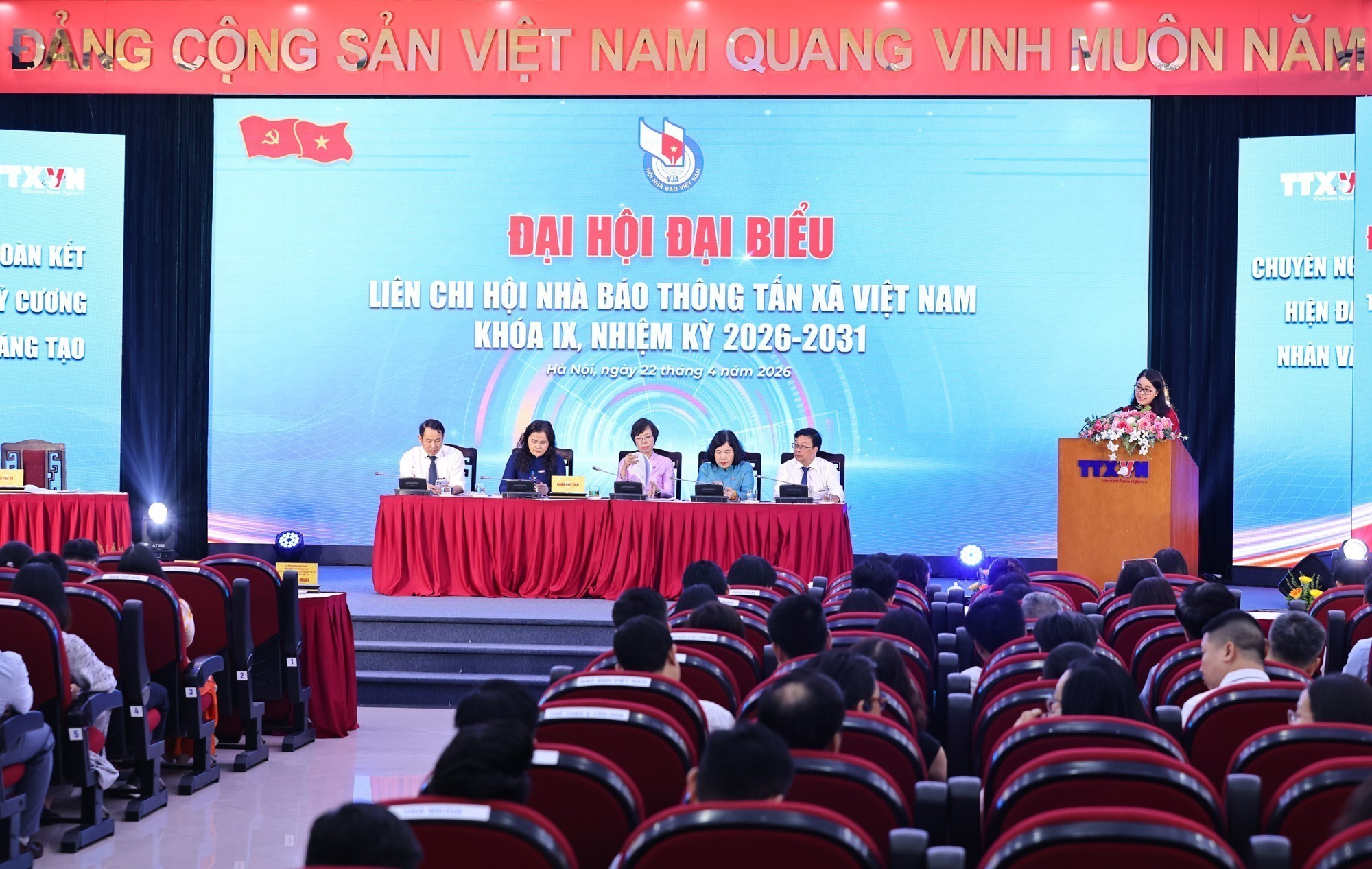Chiều 22/4/2026, tại Trụ sở Trung tâm Thông tấn quốc gia (Hà Nội), Liên chi hội Nhà báo Thông tấn xã Việt Nam (TTXVN) tổ chức Đại hội đại biểu khóa IX, nhiệm kỳ 2026 - 2031. Đồng chí Vũ Việt Trang, Ủy viên Ban Thường vụ Đảng ủy các cơ quan Đảng Trung ương, Bí thư Đảng ủy, Tổng giám đốc TTXVN, Phó trưởng ban Tuyên giáo và Dân vận Trung ương, Chủ tịch Liên chi hội Nhà báo TTXVN tham gia chủ trì Đại hội.