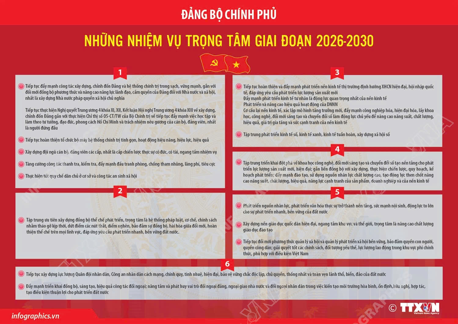 Nhiệm kỳ 2020-2025, Đảng ủy Chính phủ đã bám sát chủ trương, đường lối của Đảng, thực hiện nghiêm sự lãnh đạo, chỉ đạo của Bộ Chính trị, Ban Bí thư trong triển khai thực hiện đồng bộ, hiệu quả 3 đột phá chiến lược, 6 nhiệm vụ trọng tâm, 12 nhóm giải pháp chủ yếu và đạt được 10 thành tựu nổi bật.