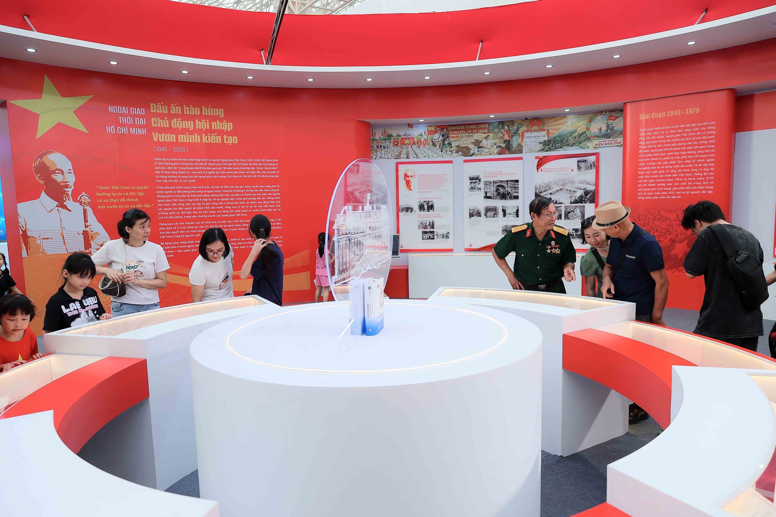Khách tham quan tại Không gian trưng bày của Bộ Ngoại giao tại Triển lãm "80 năm Hành trình Độc lập - Tự do - Hạnh phúc". Ảnh: An Đăng - TTXVN