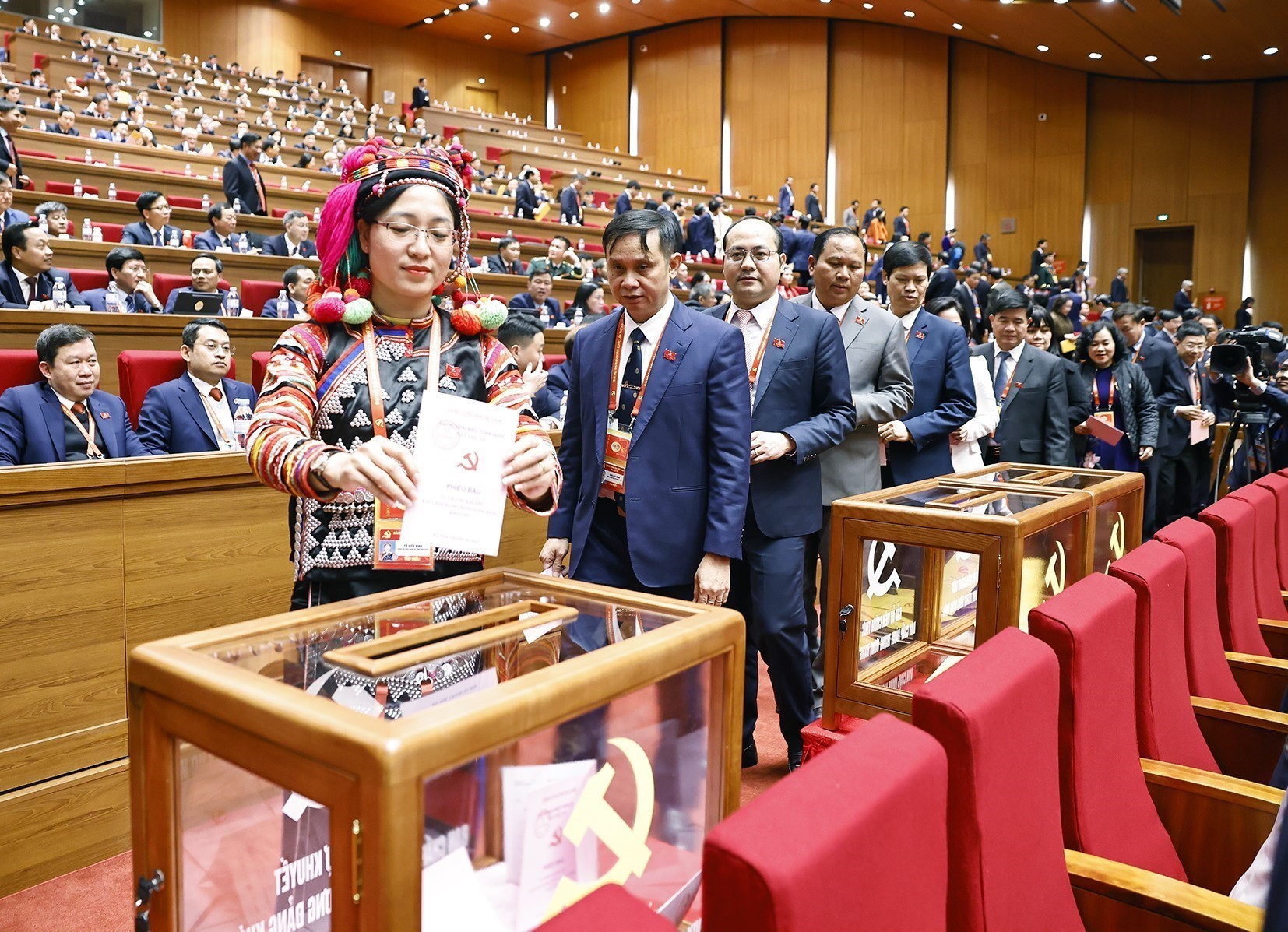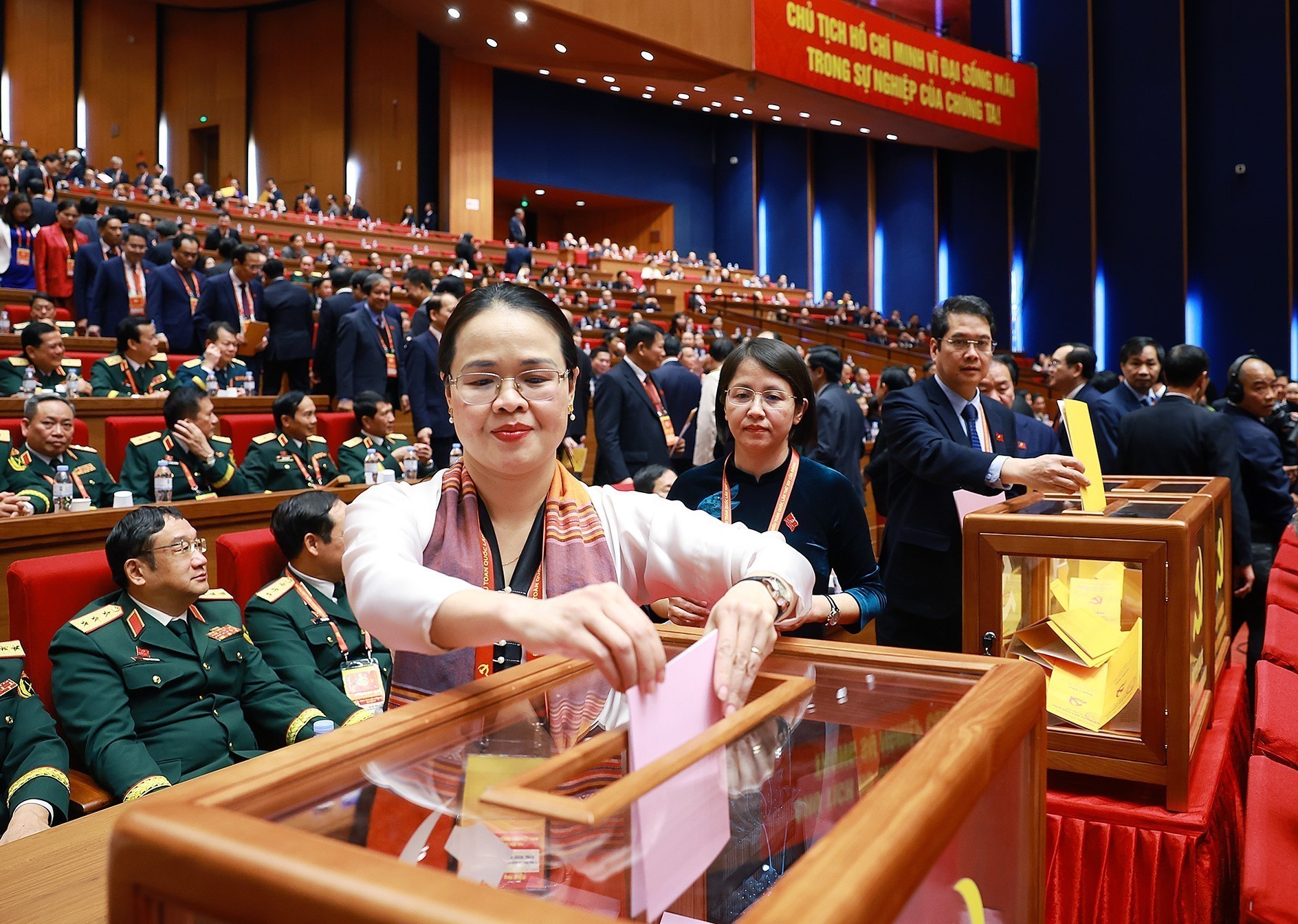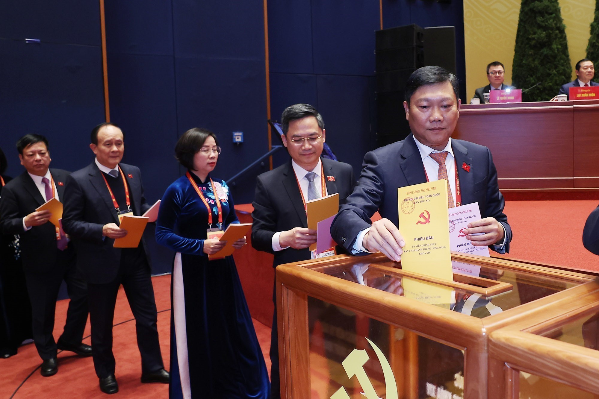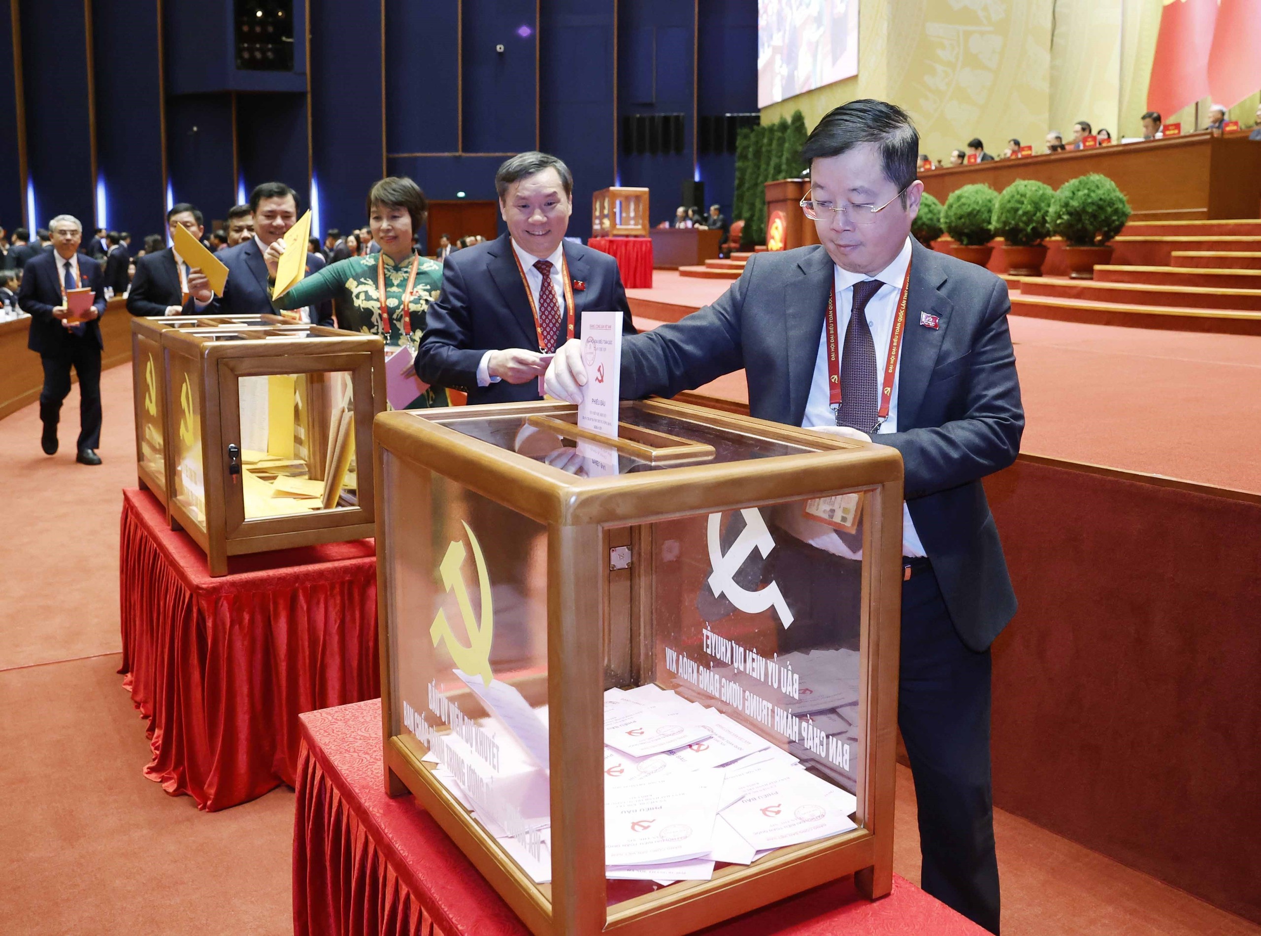 Các đồng chí lãnh đạo Đảng và Nhà nước bỏ phiếu bầu Ủy viên Trung ương chính chức và Ủy viên dự khuyết Ban Chấp hành Trung ương Đảng khóa XIV