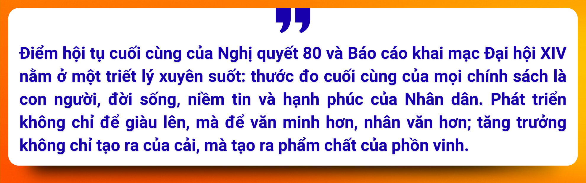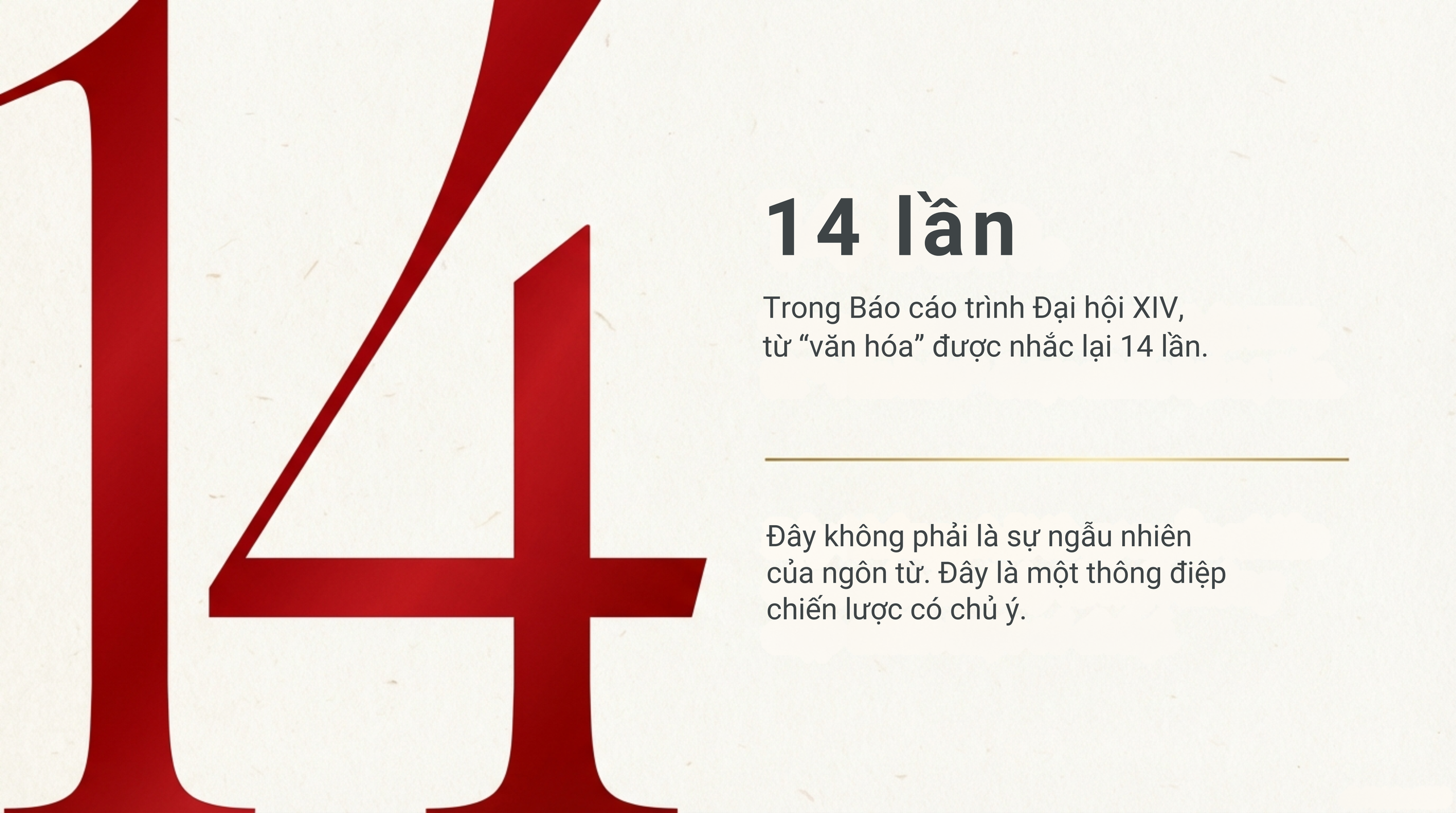 Vì thế, 14 lần từ "văn hóa" trong Báo cáo khai mạc có thể được hiểu như 14 lần nhắc nhở rằng: đất nước bước vào kỷ nguyên mới không thể chỉ dựa vào tốc độ, mà phải dựa vào chiều sâu; không thể chỉ có hạ tầng cứng, mà phải có hạ tầng mềm; không thể chỉ trông cậy vào luật pháp và công nghệ, mà phải có hệ giá trị và chuẩn mực xã hội.
