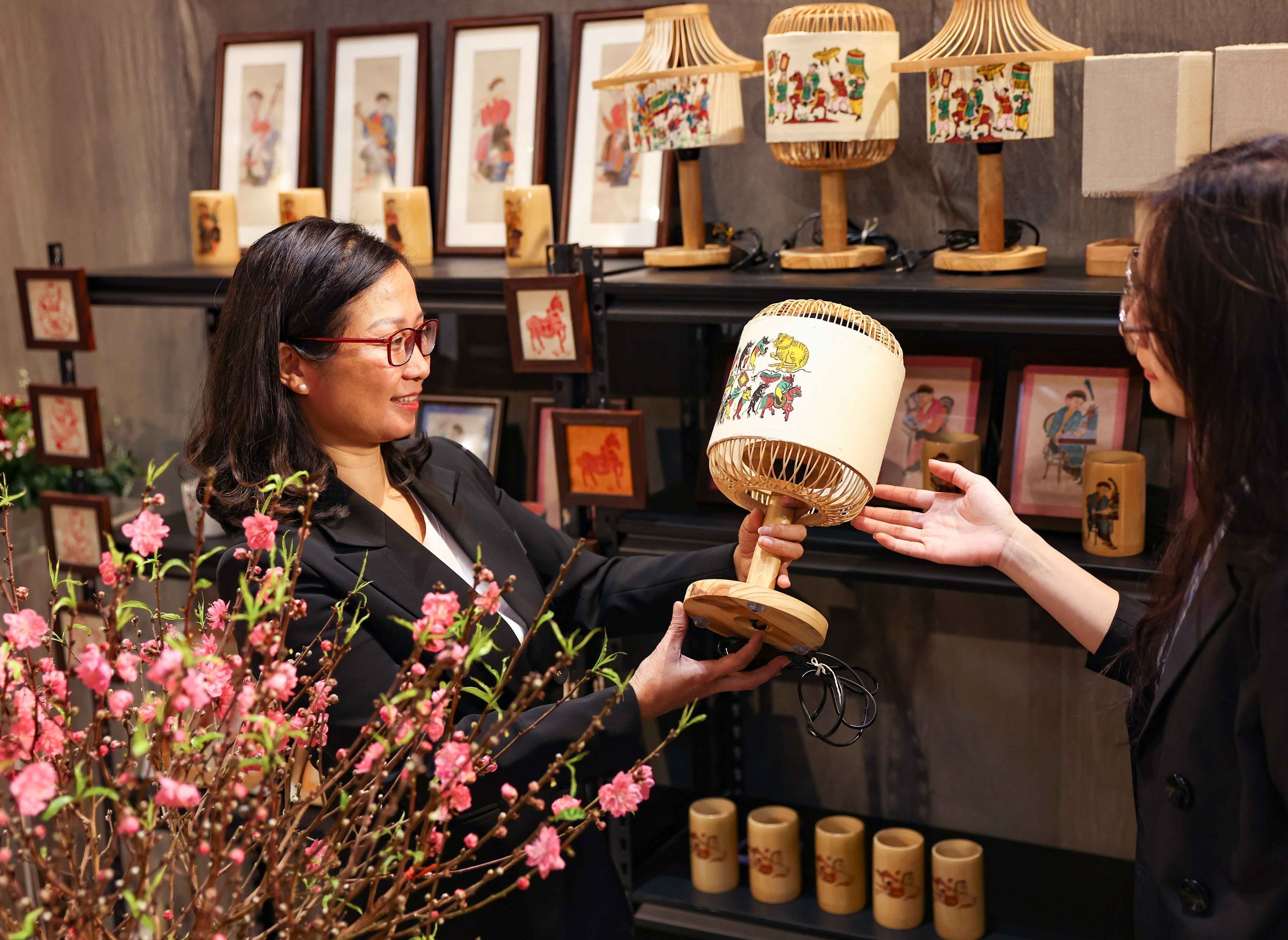 Trưng bày, giới thiệu các sản phẩm thủ công mỹ nghệ, sản phẩm làng nghề truyền thống,...Ảnh: Thanh Tùng - TTXVN