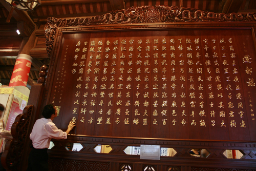 (TT&VH Online) - Không khó để nhận thấy có những người dân đến tham gia triển lãm và liên hoan thư pháp tại nhà Thái Học, Văn Miếu sẵn sàng cạy "Chiếu dời đô" để xem thật giả, không ít người vẫn cố tình sờ, thậm chí… ôm cả rùa đá chụp ảnh.