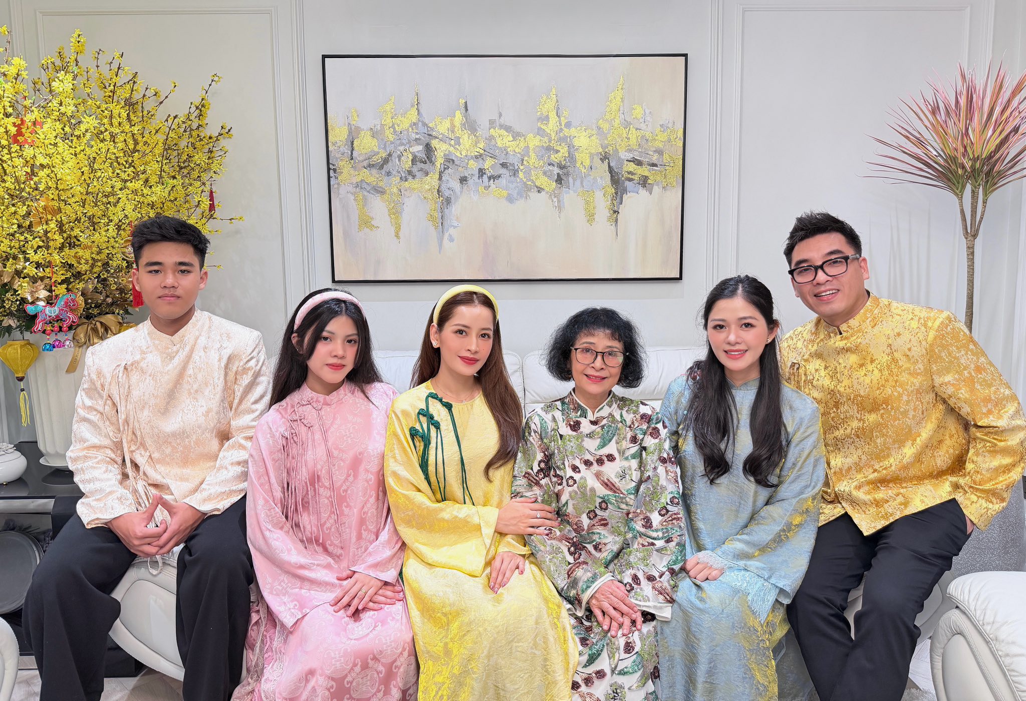 Hồ Ngọc Hà chia sẻ hình ảnh gia đình, hạnh phúc bên bố mẹ và các con. Nữ nghệ sĩ viết: "Đại gia đình của Hà xin gửi lời chúc Tết đến tất cả mọi người, những ai hữu duyên nhìn thấy những dòng tin nhắn này thật nhiều sức khoẻ, Mã Đáo Thành Công, phi nước đại đến những giấc mơ của mình và đặc biệt luôn thật nhiều hạnh phúc".